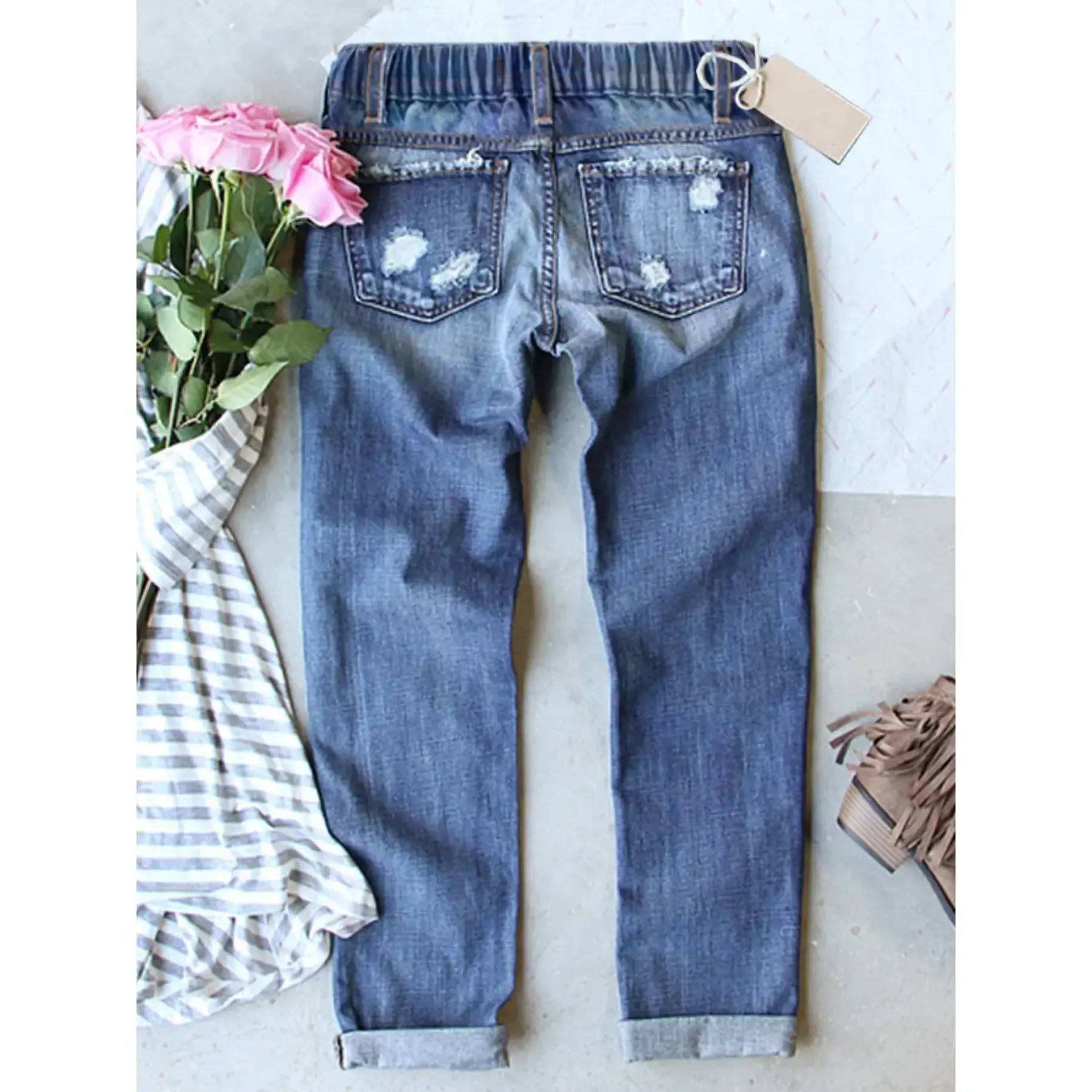 【Heart Patch Print】: Features unique heart patch prints, adding a playful and charming detail to the classic denim look. 【Durable Vintage Style】: Crafted with a distressed design and cat whisker technique, giving a vintage appeal to modern wear. 【Breathable Fabric】: Made from stretchy and breathable material, ensuring a pleasant wearing experience across various temperatures. 【Stretch Waistband】: Equipped with a stretchy waistband at the back, accommodating various body shapes for enhanced fit. 【Button Fly Closure】: Includes a secure button fly closure, guaranteeing practicality combined with traditional denim styling.