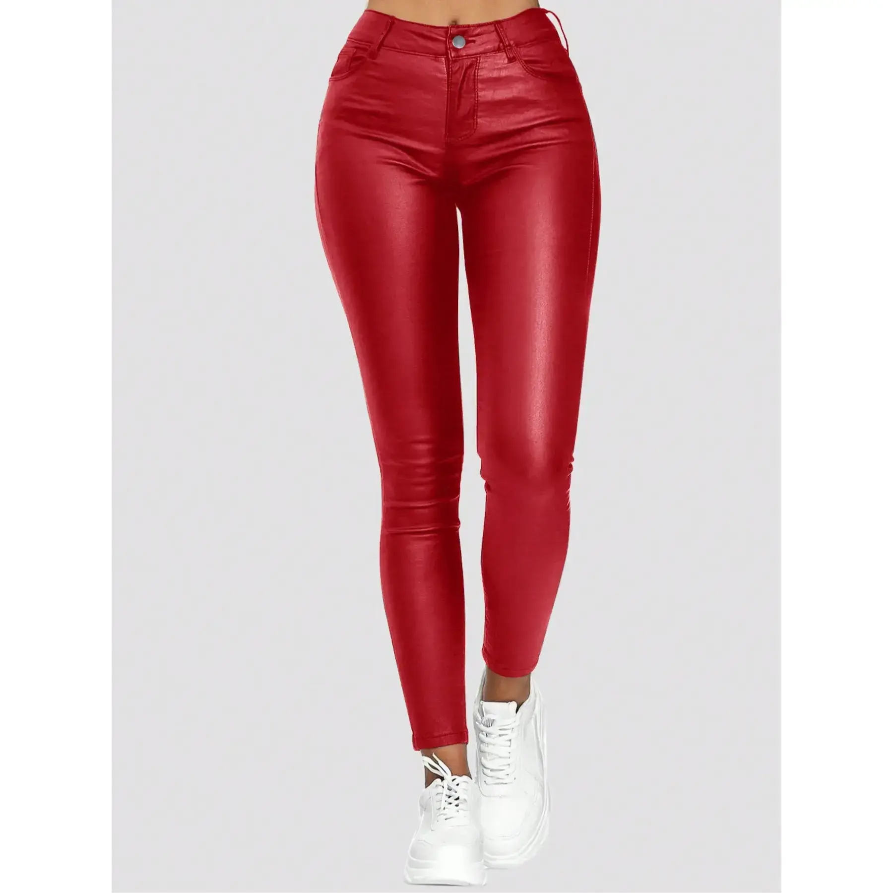 【High-waisted】: The high-waisted cut enhances your silhouette and provides a flattering fit, elevating your look effortlessly. 【Diagonal Pockets】: Featuring unique diagonal pockets, these pants offer a modern touch while allowing for convenient storage of essentials. 【Moderate Fabric Thickness】: Crafted from moderate thickness PU material, these pants provide a comfortable feel while maintaining durability throughout wear. 【Tight-fitting】: Designed to be tight-fitting, they emphasize body contours, offering a sleek appearance that meets contemporary trends. 【All-season Wear】: Suitable for all seasons, these PU pants ensure versatility in styling, catering to diverse weather conditions.