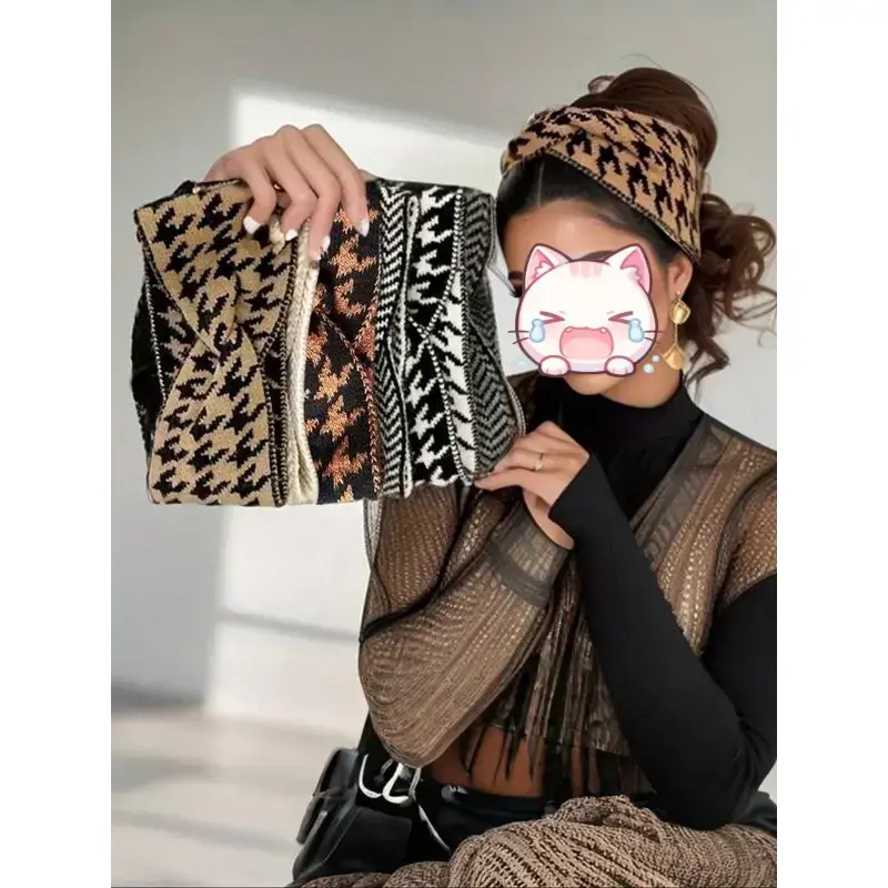Women's knitted headband, 5-piece set, retro style, high elasticity, perfect for daily wear and outdoor activities, adjustable headband