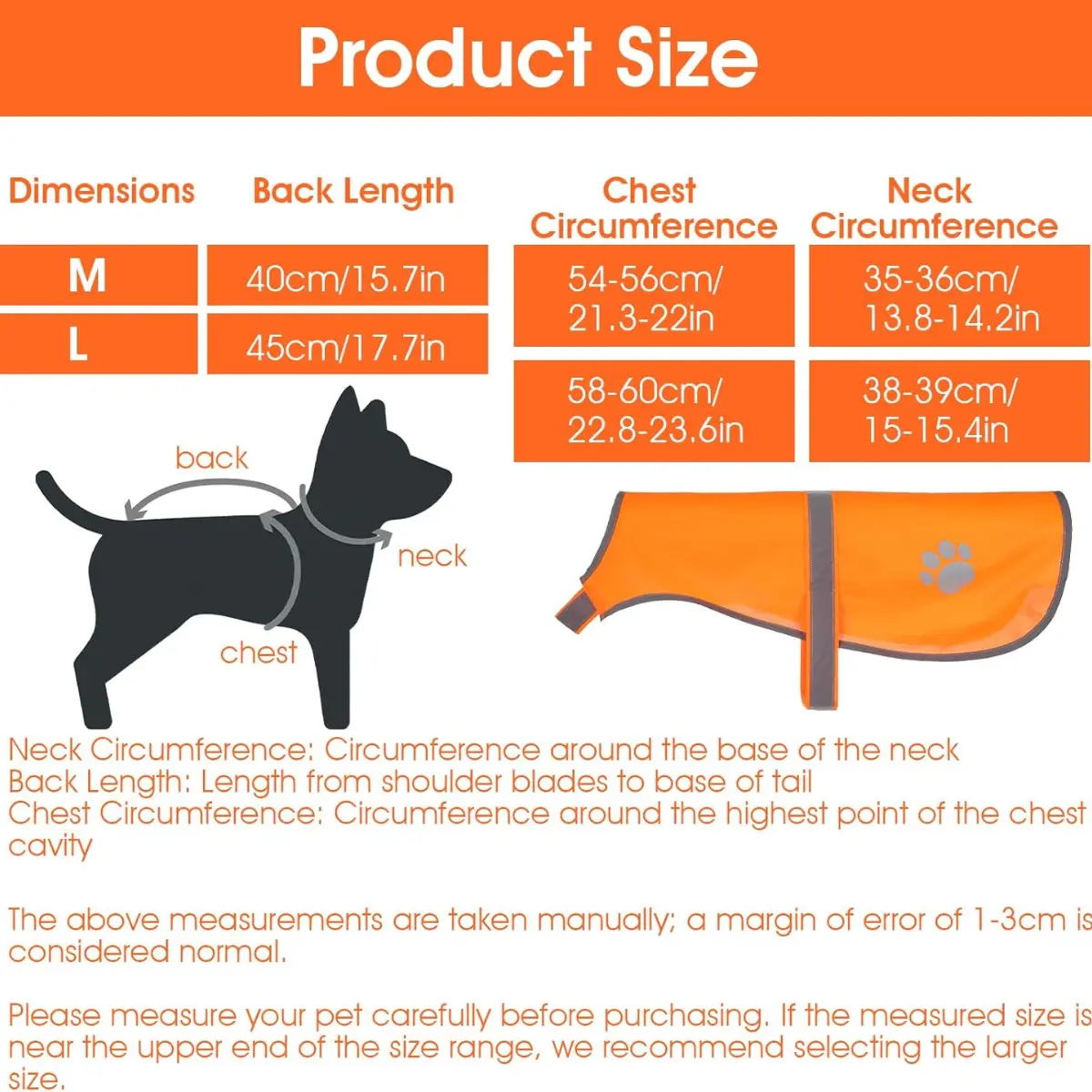 ·Usage Notes: This orange dog safety vest is designed for dry weather conditions and is not waterproof or scratch resistant. Regular maintenance of your dog's nails is recommended to prevent damage to the vest material. The vest is specifically intended for walking, jogging, and casual outdoor use rather than hunting or rainy conditions