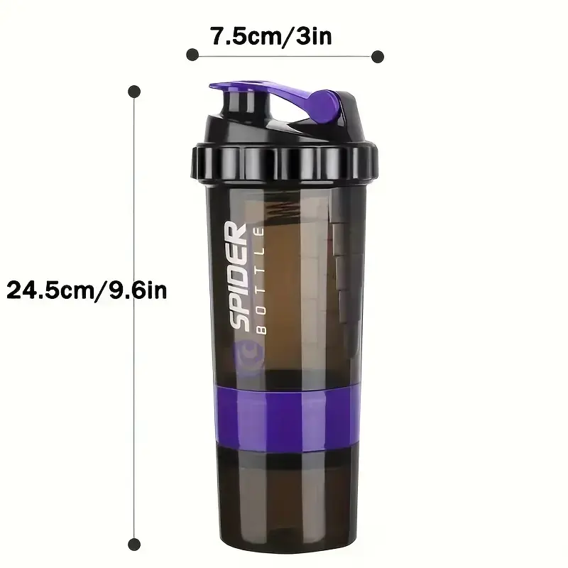 【Three-Layer Design】: Features a unique three-layer structure for efficient mixing and storage of protein powder. 【Portable Size】: Compact 500ml/17oz capacity makes it easy to carry for fitness activities and workouts. 【Spring Spider Cup】: Innovative spring spider mechanism ensures smooth mixing every time you shake. 【Durable Material】: Made from high-quality polypropylene (PP), ensuring long-lasting use and durability. 【Versatile Use】: Ideal for gym sessions, sports training, and preparing fitness milkshakes anytime, anywhere.