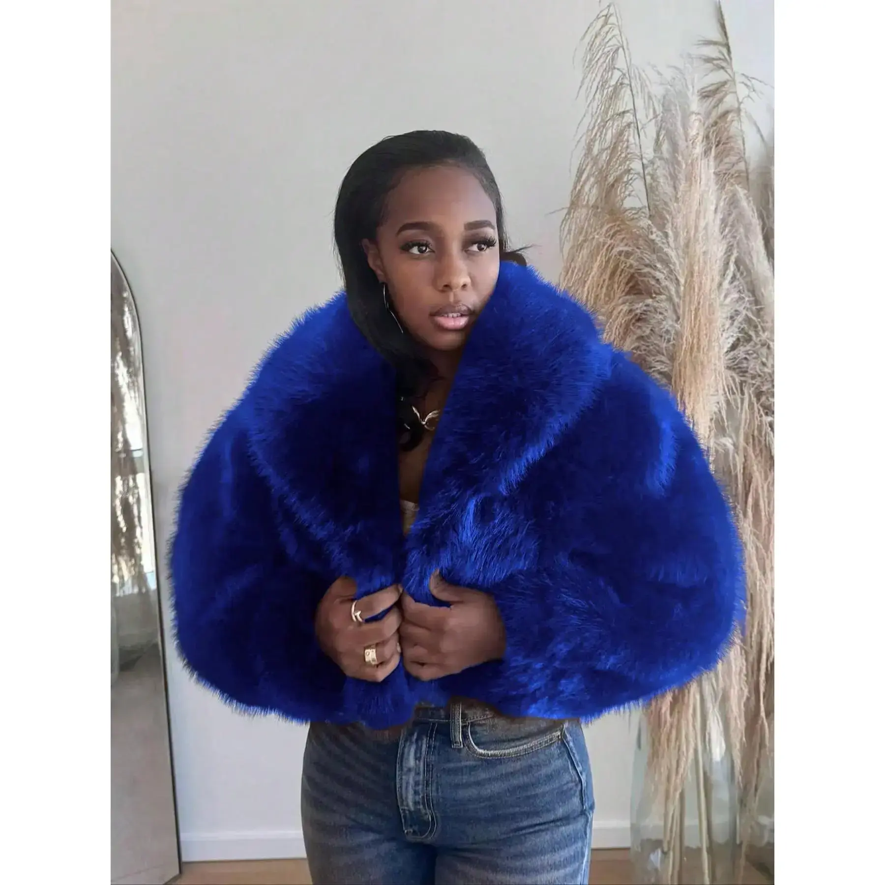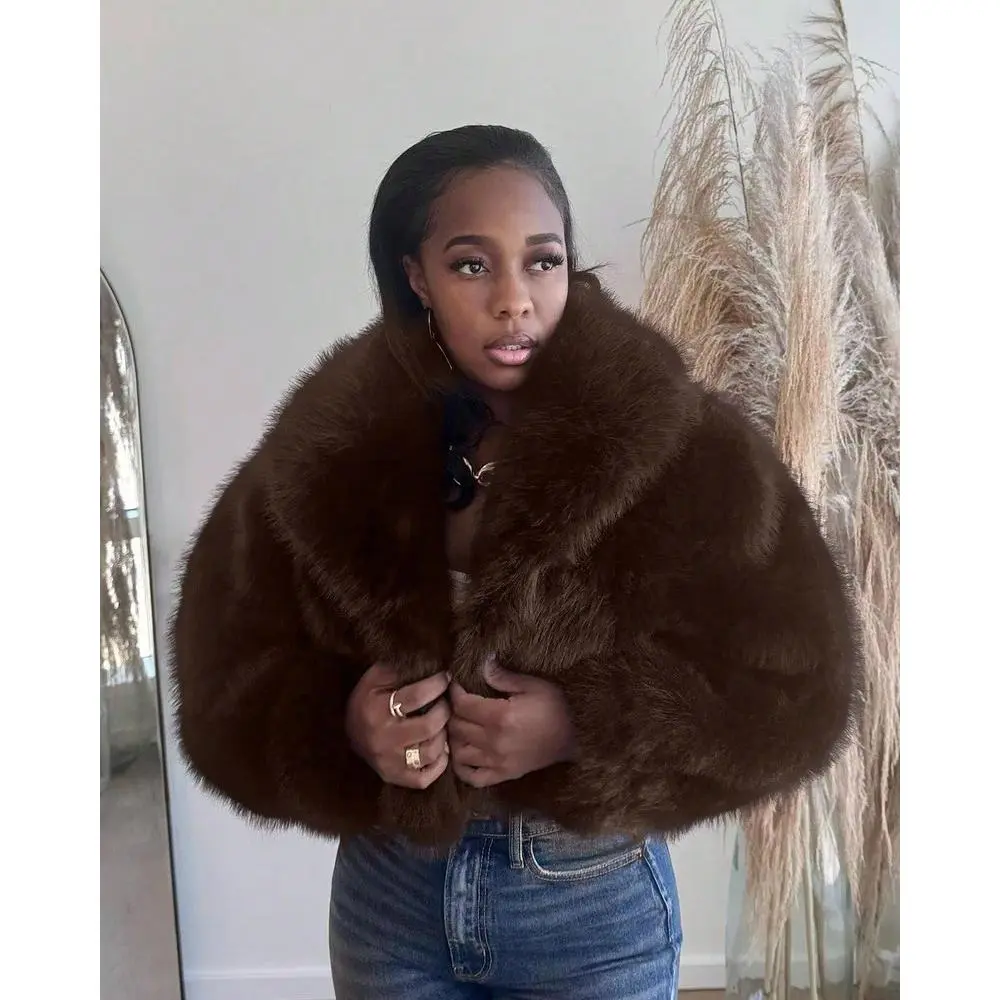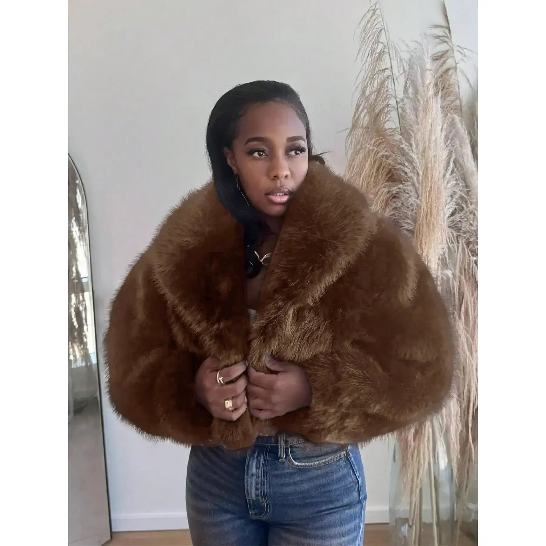 Women's solid color faux fur leather jacket, autumn and winter casual fashion short plush jacket, women's clothing, women's daily wear