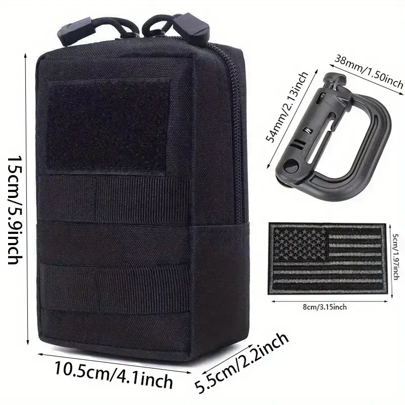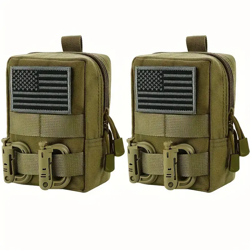 2 Molle bags - Compact waterproof EDC bag - Small practical bag with 2 stickers and 2 D-bucklesRAIMENTRY