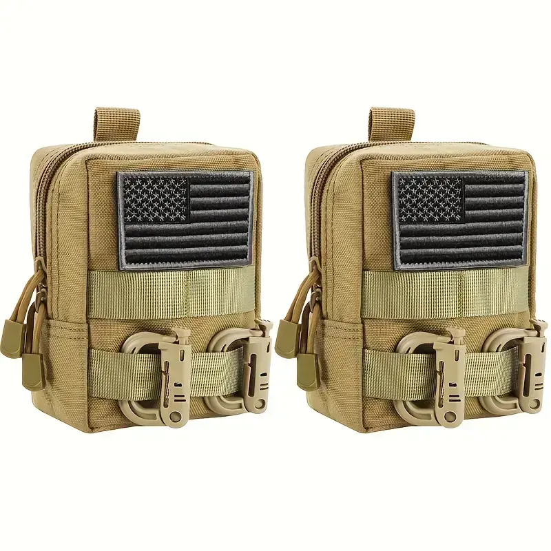 2 Molle bags - Compact waterproof EDC bag - Small practical bag with 2 stickers and 2 D-buckles