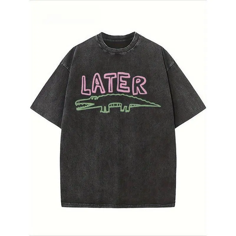 Valentine's Day Shirt Satirical Crocodile Pattern Back Shirt - Fun Neutral Crocodile Pattern Loose T-shirt, Breathable Washed, Round Neck Short Sleeve Casual and Holiday PartyRAIMENTRY