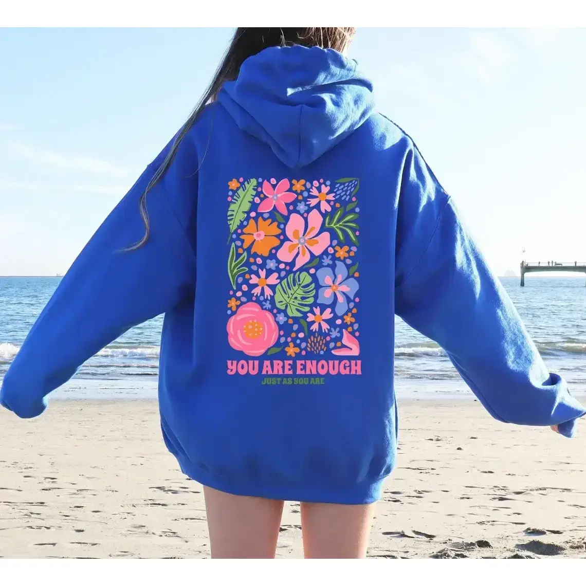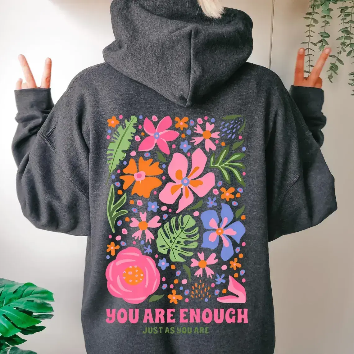 🌸 You Are Enough Hoodie – Floral Cottagecore Hoodie with Positive Quote Elevate your style with this floral cottagecore hoodie, perfect for nature lovers and girls. It features a positive quote and Y2K aesthetic. Ideal as a self-love gift. Crafted from Gildan Heavy Blend Hooded Sweatshirt, it offers a classic fit with 50% cotton and 50% polyester. The fabric weighs 271 g/m², ensuring durability and comfort. 🛠️ Material Details 🧳 Caring Instructions Wash inside out in cold water. Avoid bleaching, dry cleaning, and direct ironing on the design. Follow these steps to keep your hoodie looking new. For rush orders, contact us. Production takes 1-3 business days; shipping is 1-5 business days. Have questions? Let us know! Happy shopping!