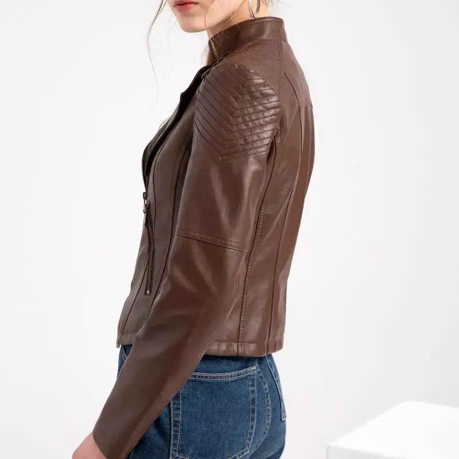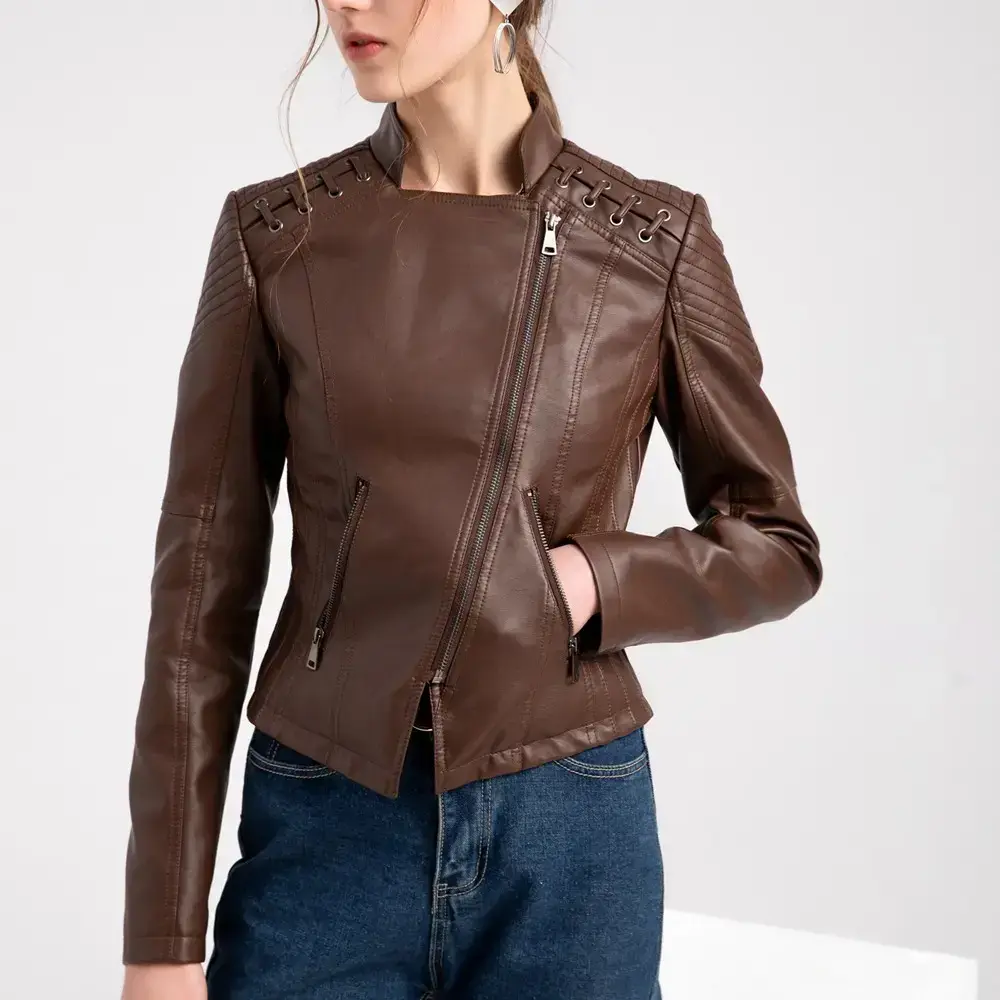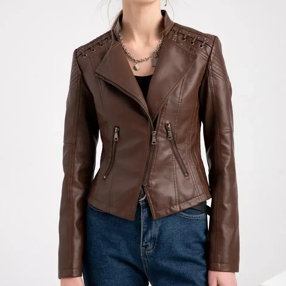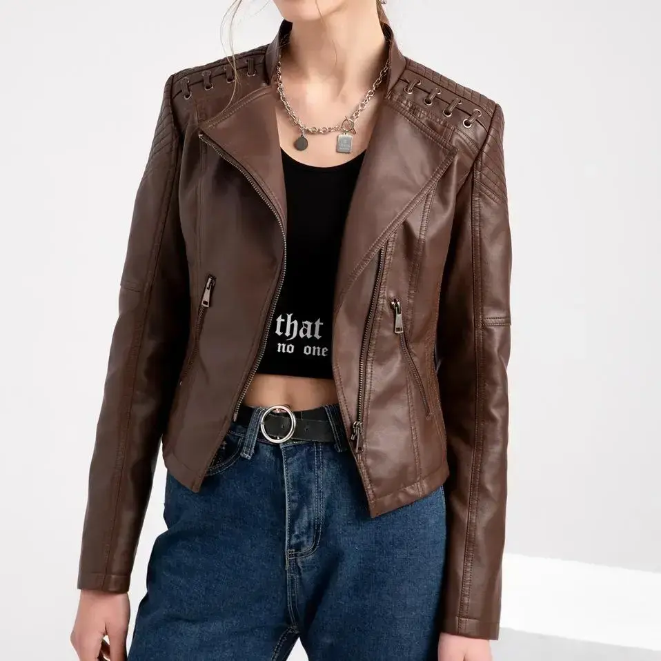 Women's faux leather motorcycle ultra-thin leather jacket, PU leather jacket, women's streetwear fashionable jacket motorcycle jacket black wine red camel color s-2XL