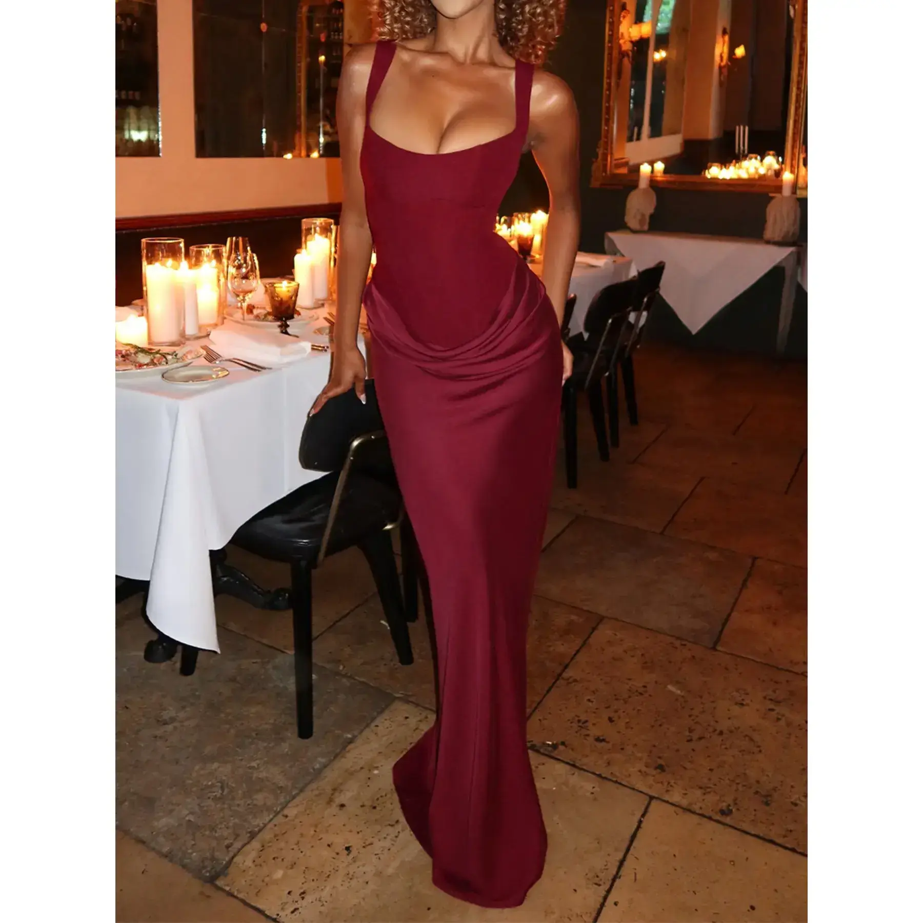 Elegant Corset Evening Dress Women Sleeveless Spaghetti Strap Maxi Gown Formal Events Special Occasions Wedding Guest Party Dress
