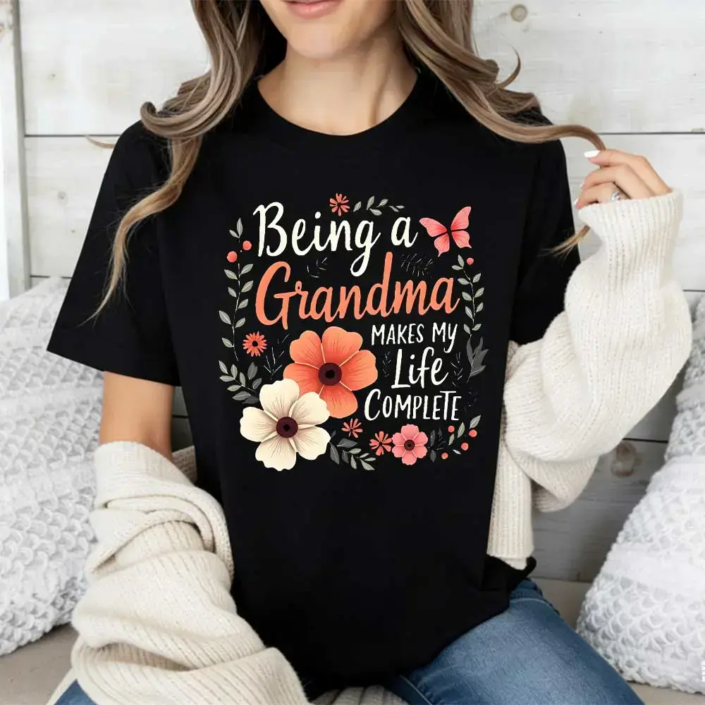 Grandma Flower Quotation Design T-shirt Round Neck Casual T-shirt Women's Mother's Day Gift Grandma SetRAIMENTRY