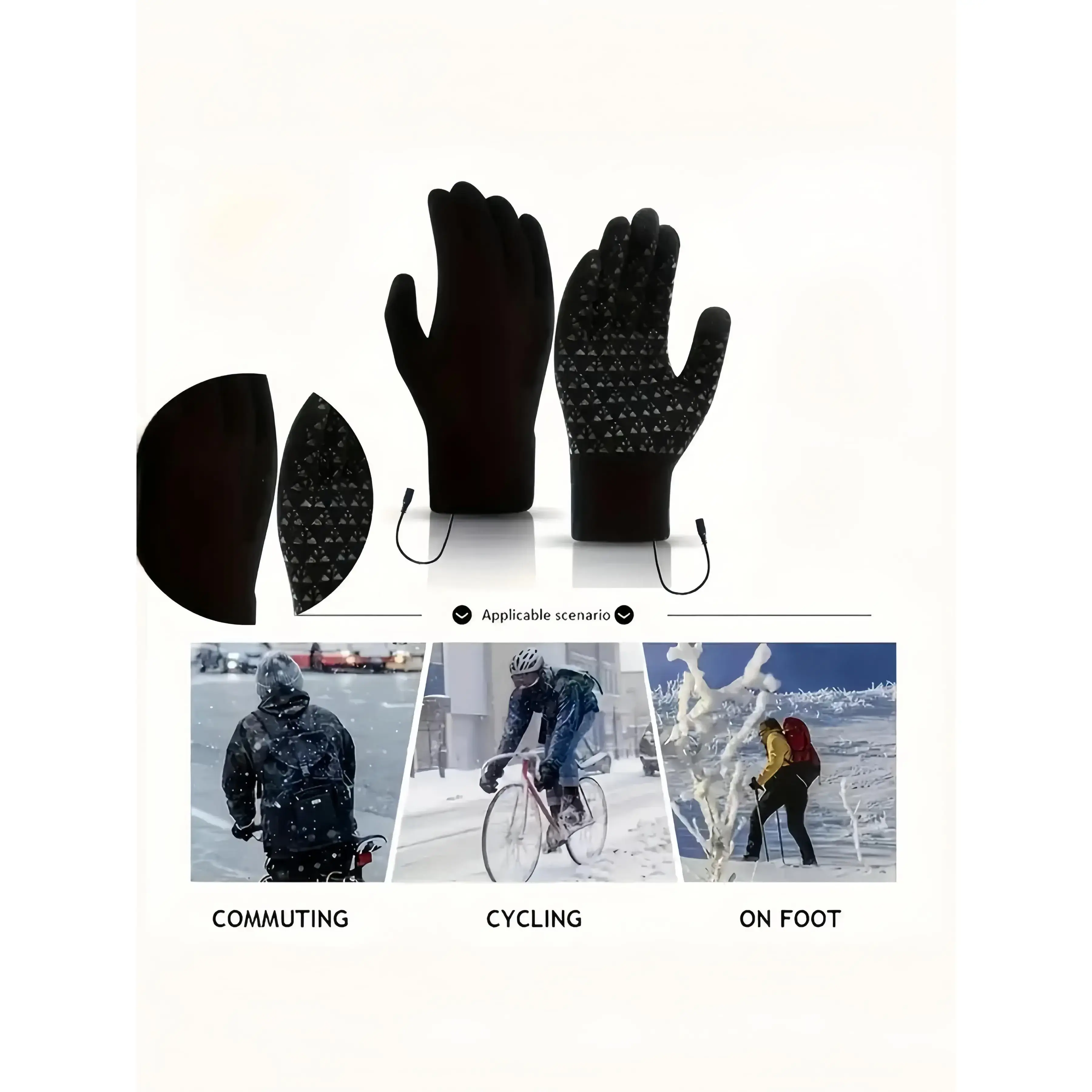 【USB Heating Feature】: Equipped with a USB heating system, offering effective warmth for hands and feet during cold outdoor activities. 【Touchscreen Capability】: Allows you to operate touchscreen devices without removing the gloves, ensuring convenience and functionality. 【Two-Piece Set】: Includes both USB heated gloves and heated insoles, providing comprehensive warmth for winter outings. 【Unisex Design】: Designed for both men and women, making it a practical and inclusive choice for winter wear. 【Plain Pattern】: Features a simple plain pattern, offering a timeless look that can fit seamlessly with winter outerwear.