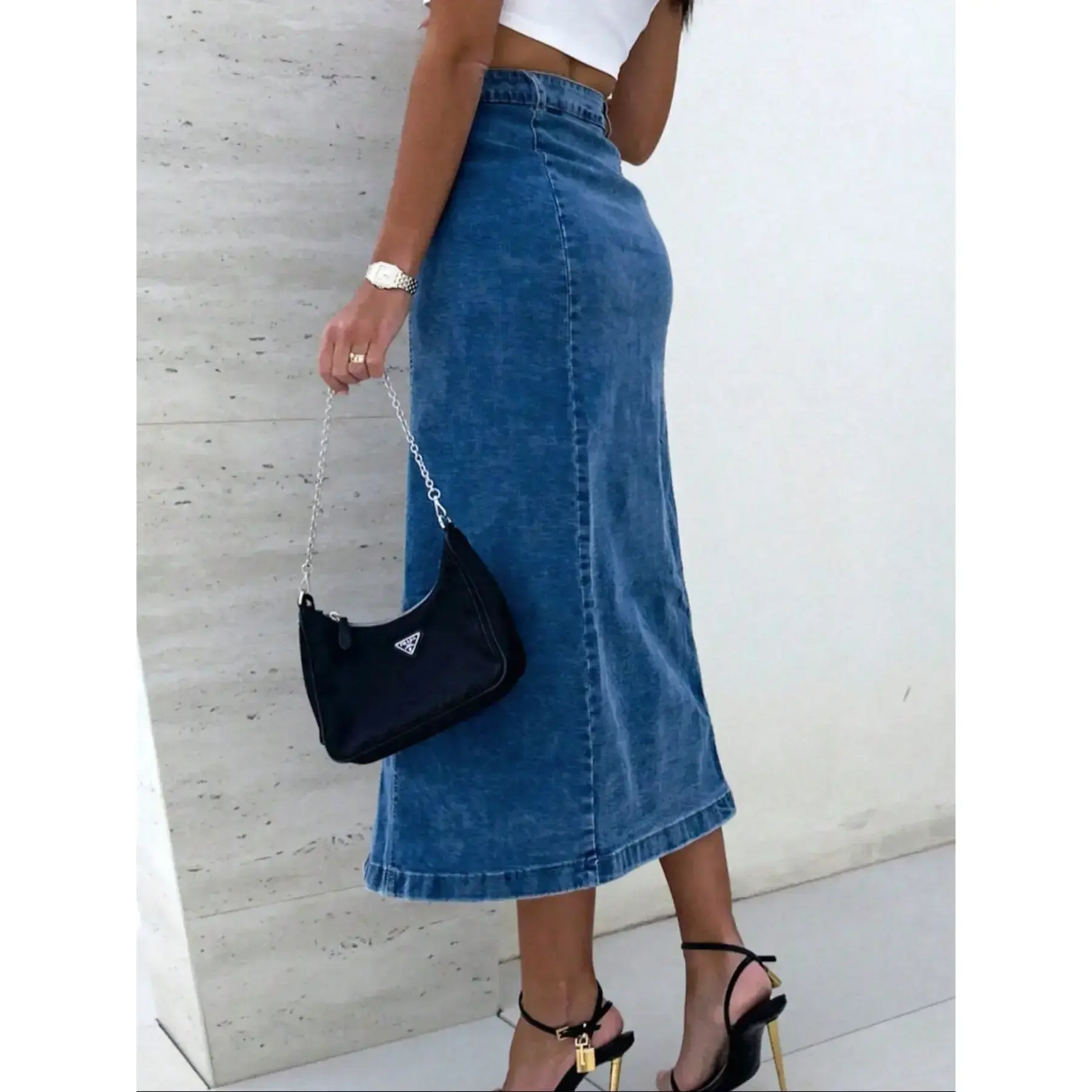 Women's denim skirt, with a fitted and stylish half sleeved design, is perfect for casual wear and fashion, making it an ideal gift for herRAIMENTRY