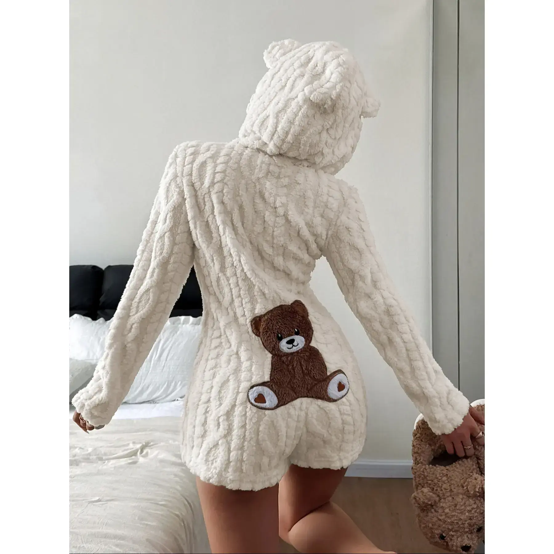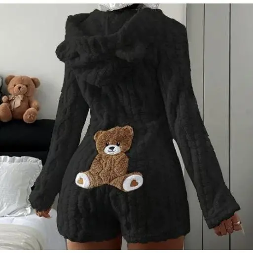 【Unique Embroidery】: Features a charming teddy bear embroidery, adding a distinctive touch that sets it apart from similar apparel. 【Plush Material】: Crafted from soft, plush fabric that provides a gentle feel, enhancing the overall wearing experience during cooler seasons. 【Hooded Feature】: Equipped with a cozy hood, offering extra warmth and protection from the elements during fall and winter. 【Fitted Silhouette】: Designed with a fitted cut, ensuring a flattering fit that complements various body types while providing ease of movement. 【Seasonal Versatility】: Suitable for fall and winter wear, making it a reliable choice for layering in cooler weather without sacrificing aesthetics.