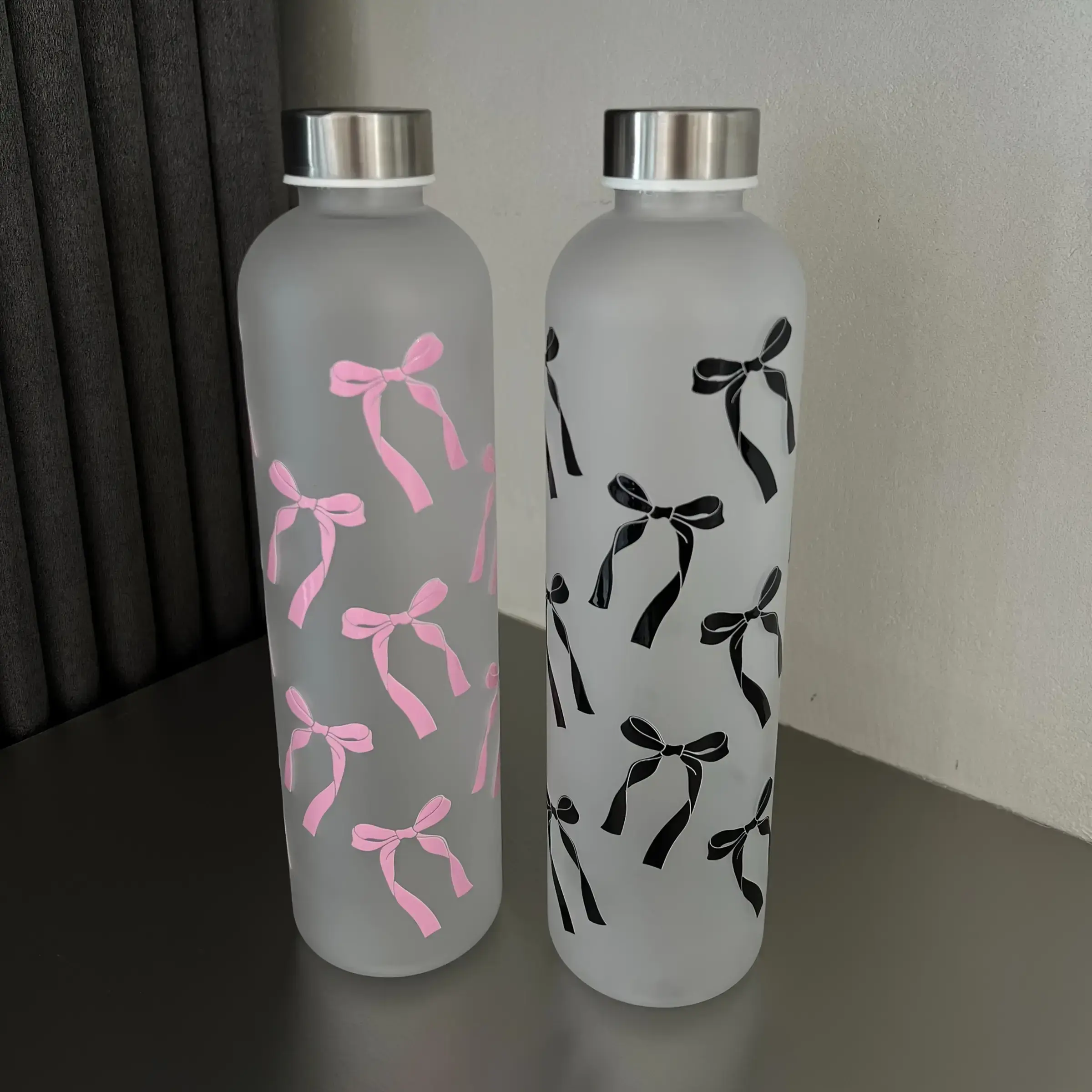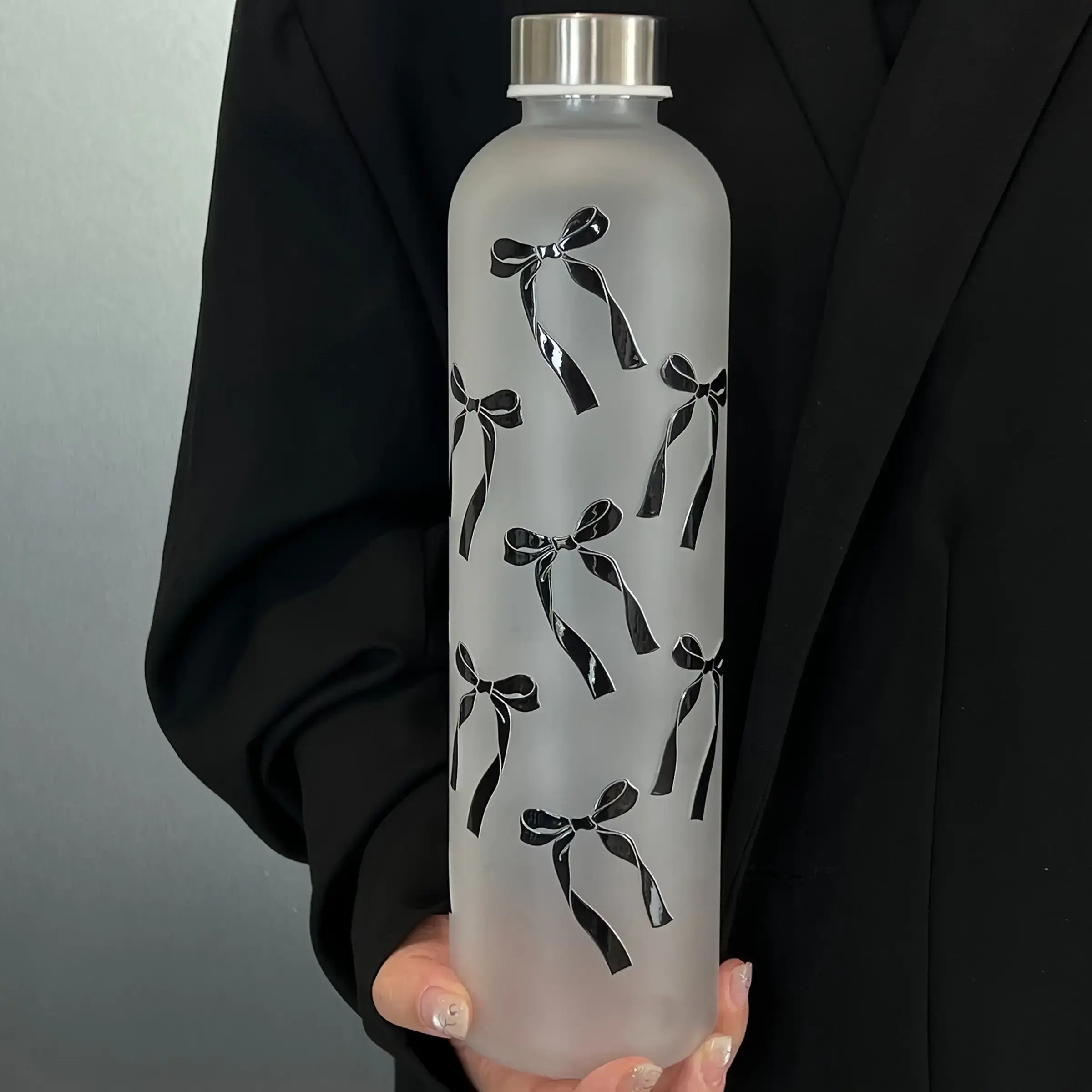 1000ML matte bow outdoor sports drink bottle with textured edges and butterfly pattern, essential for outdoor travel, perfect giftRAIMENTRY