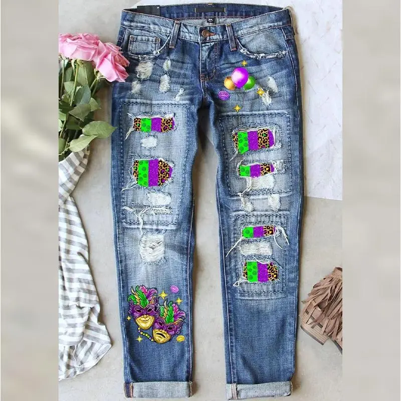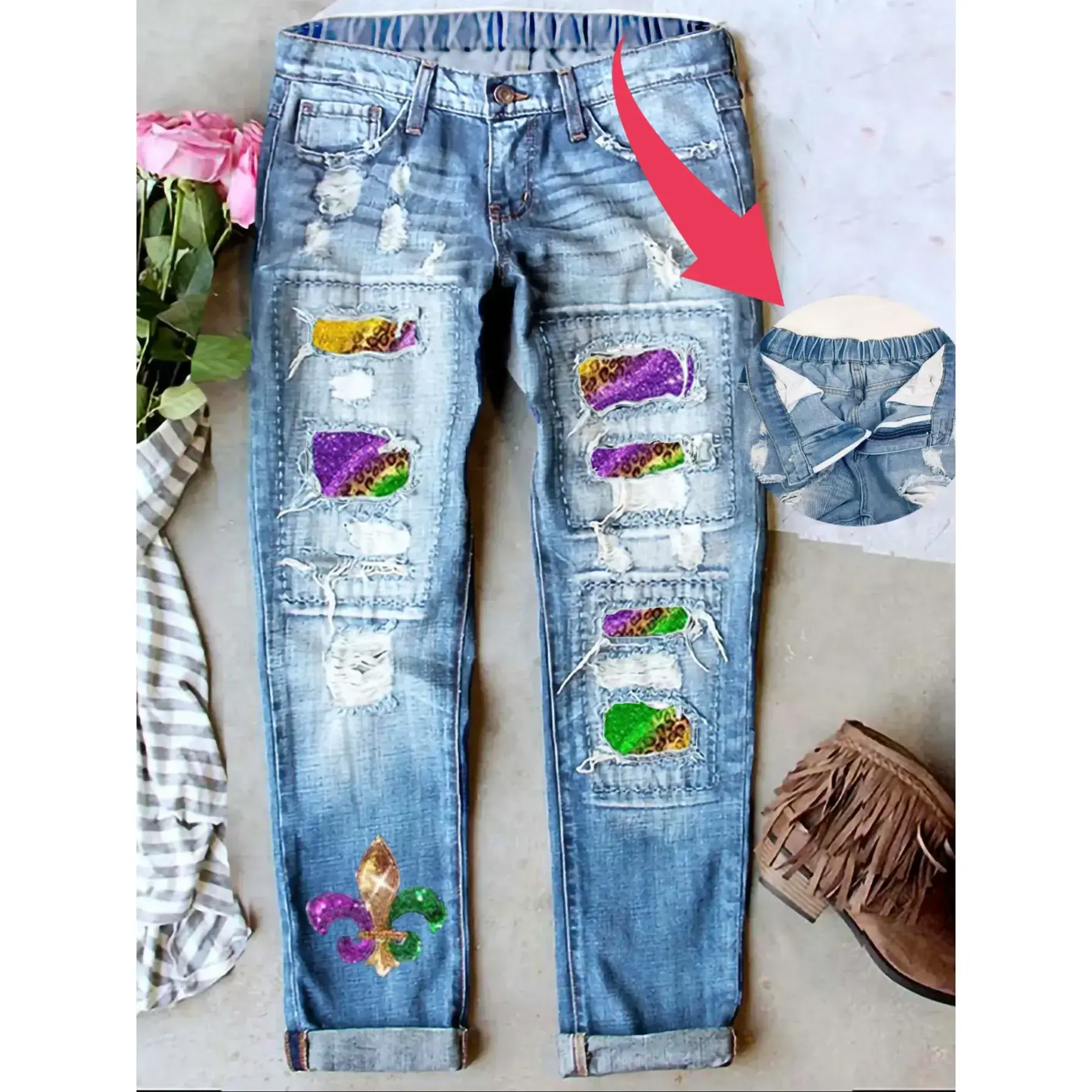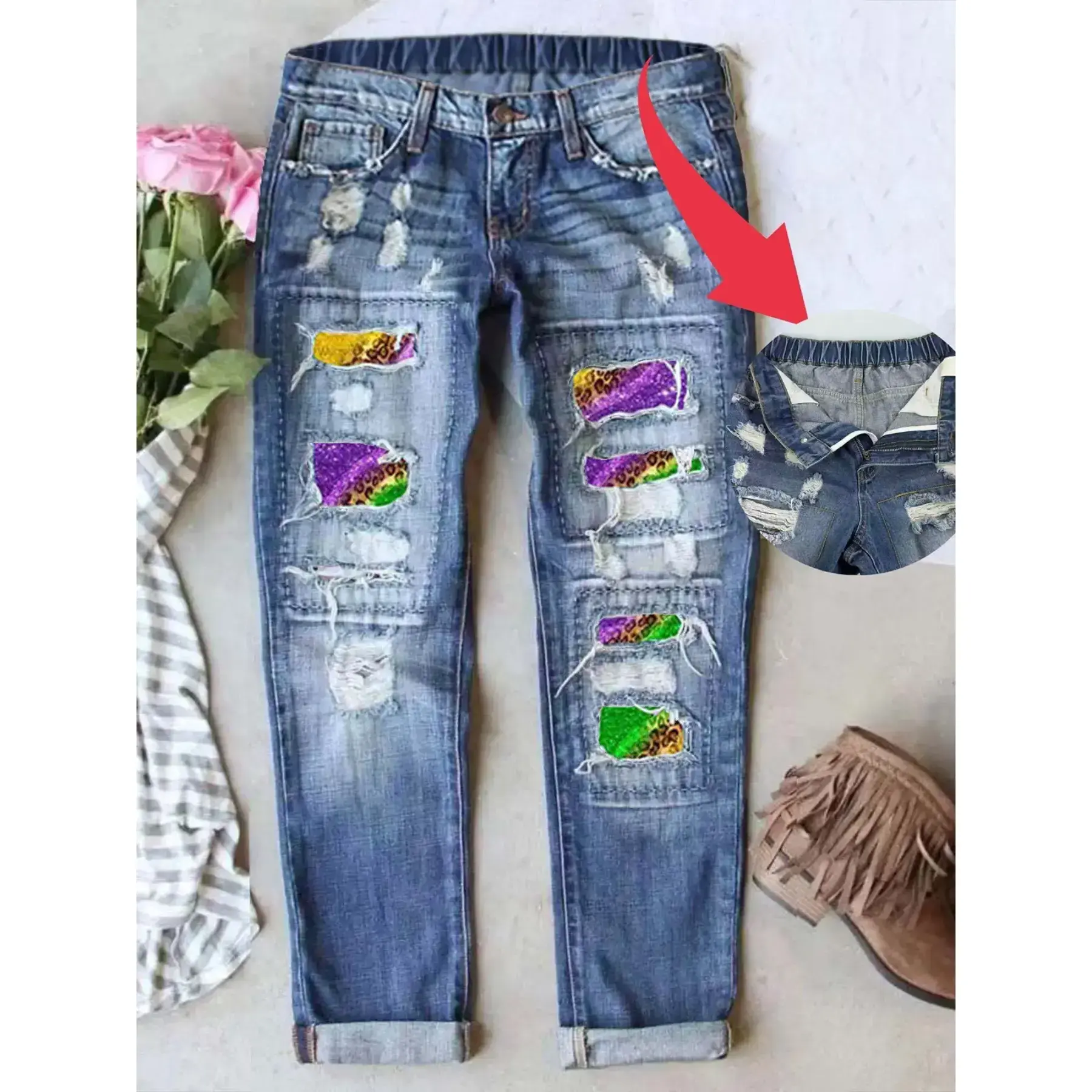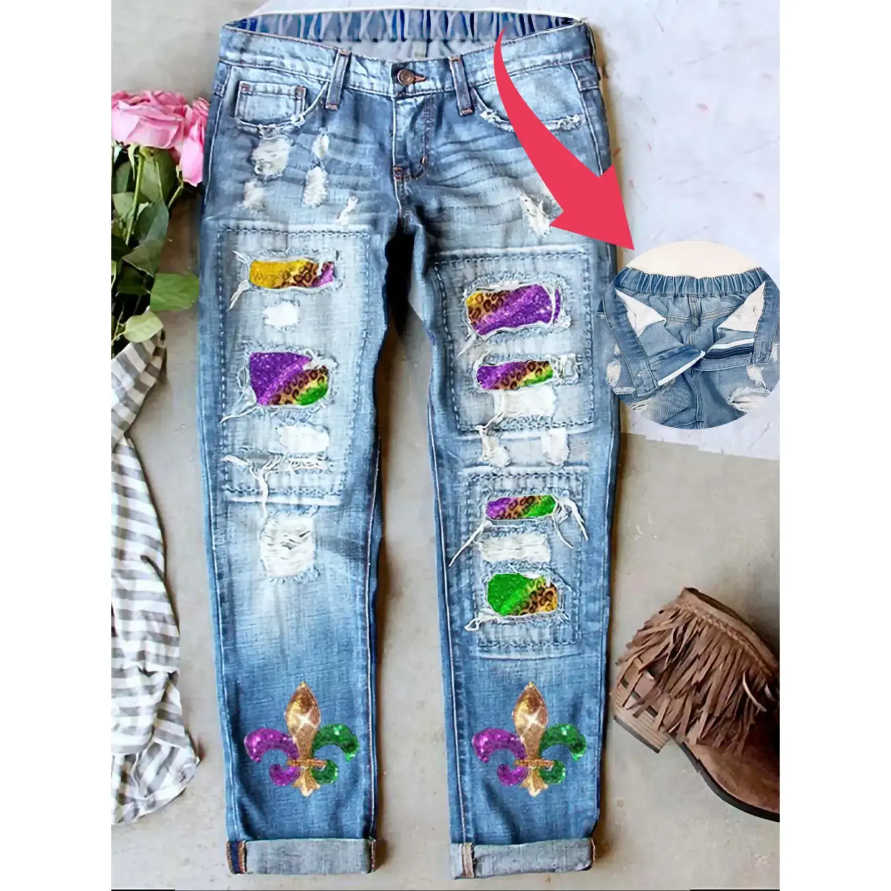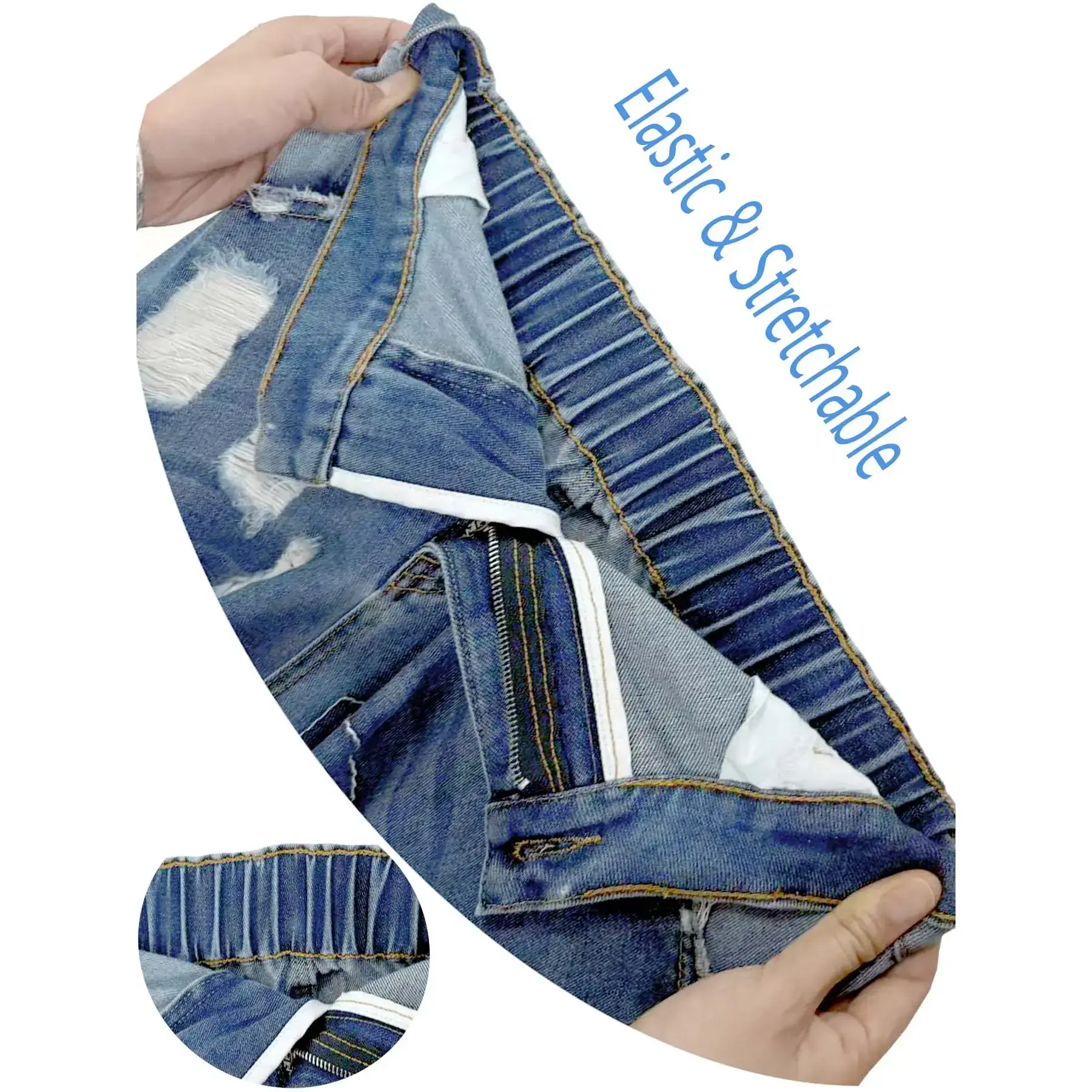 【Ripped Detail】: The ripped design adds a trendy edge, making these jeans stand out in any casual outfit. 【Elastic Waist】: Featuring an elastic waist, these jeans ensure a snug yet flexible fit for all-day wear. 【Slim Fit】: Designed with a slim fit, these jeans provide a sleek silhouette that flatters various body types. 【Washed Look】: The washed finish offers a worn-in appeal, combining vintage charm with modern trends. 【Button Fly】: Equipped with a button fly closure, these jeans emphasize a classic aesthetic while ensuring secure fit.