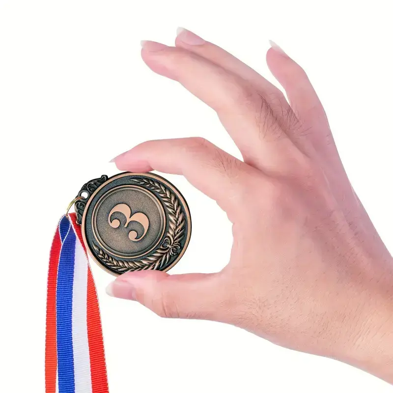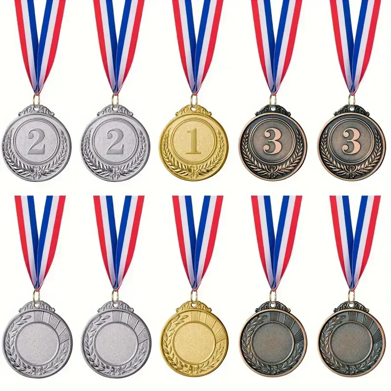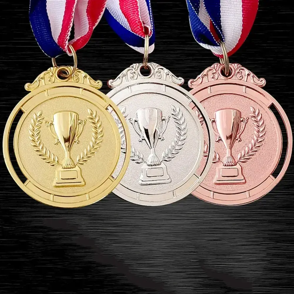 Small gold, silver, and bronze medals wi