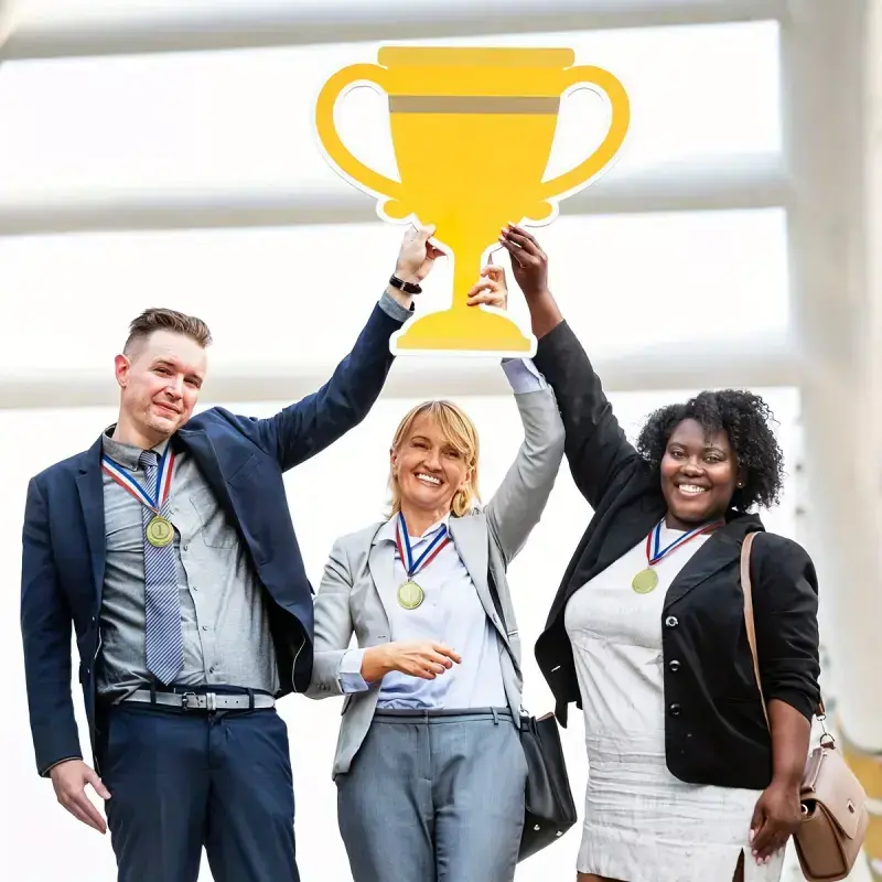 Large gold, silver, and bronze medals wi