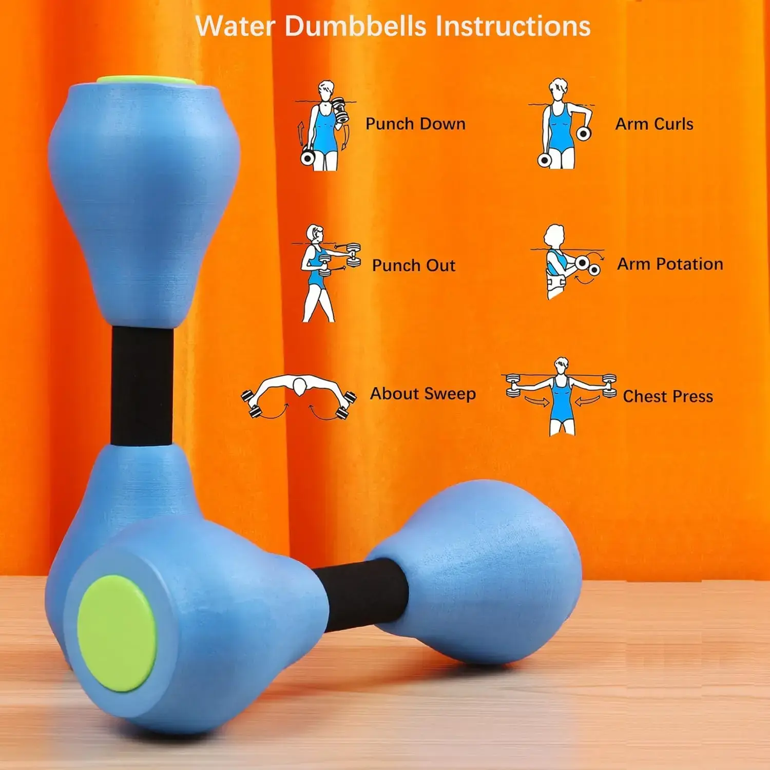 Two piece set of water dumbbells for swimming pool sports -- foam water counterweight for aerobics and fitnessRAIMENTRY
