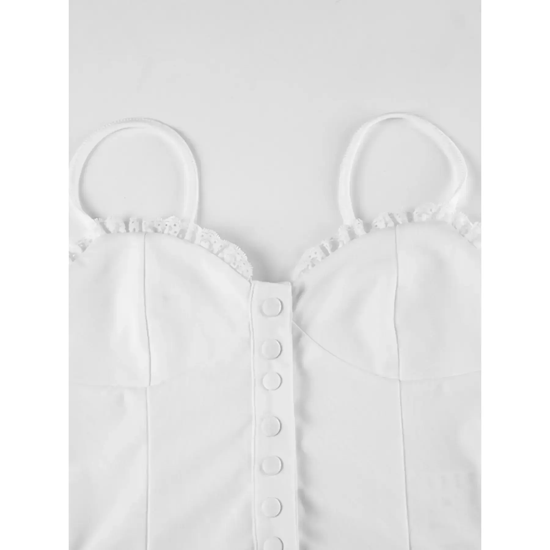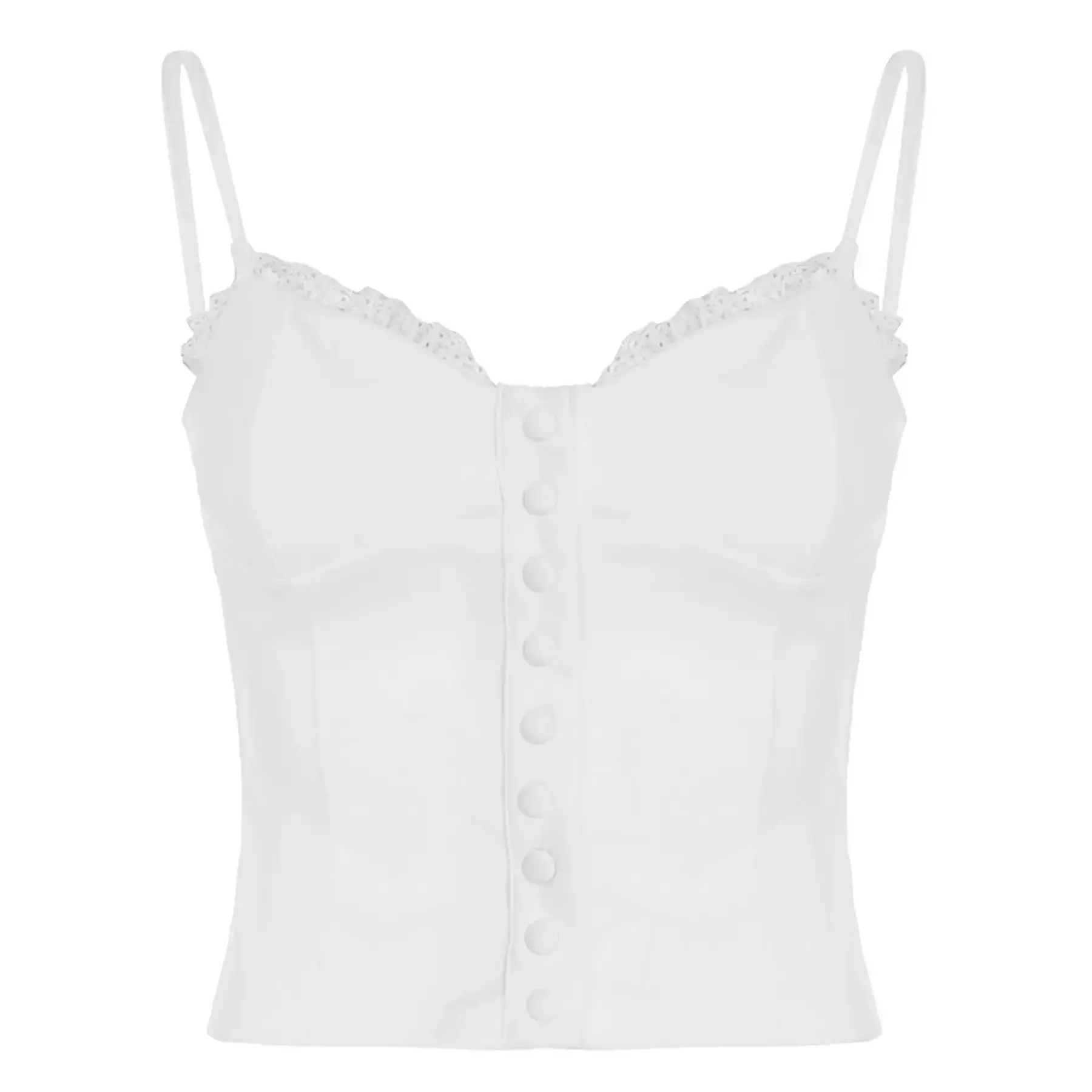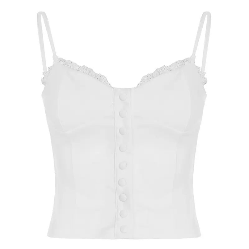Lace strapless top, button trimmed slim fit vest, elegant women's summer fashion sleeveless top, slim fit shoulder strapsRAIMENTRY