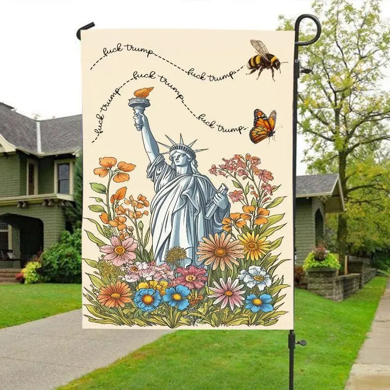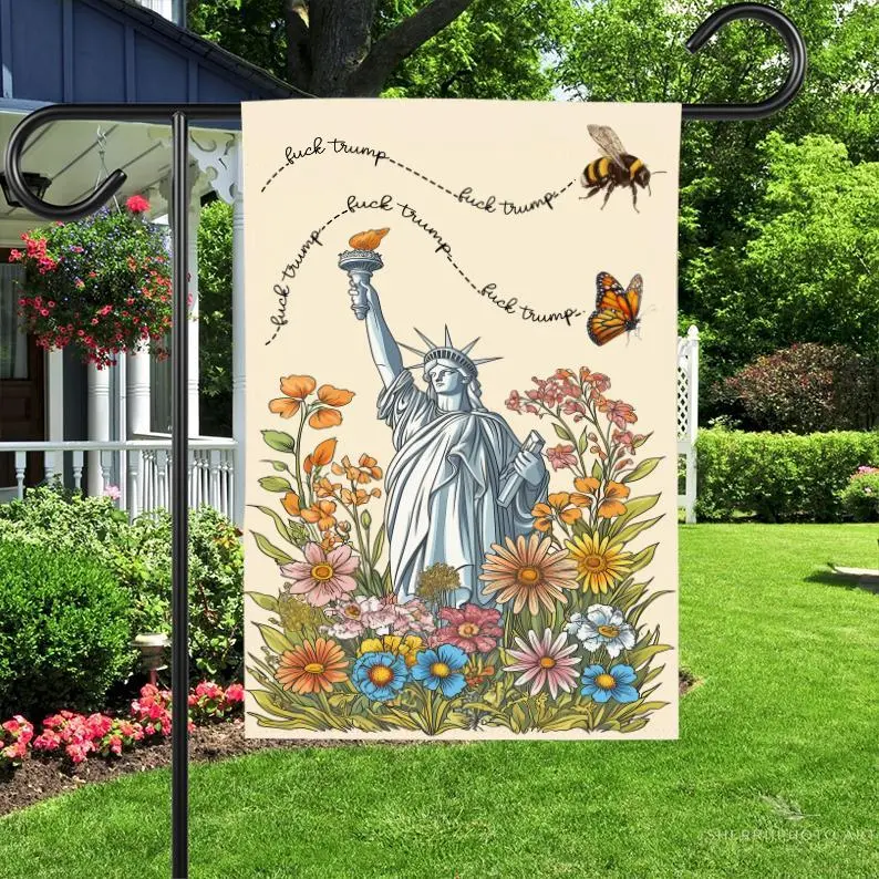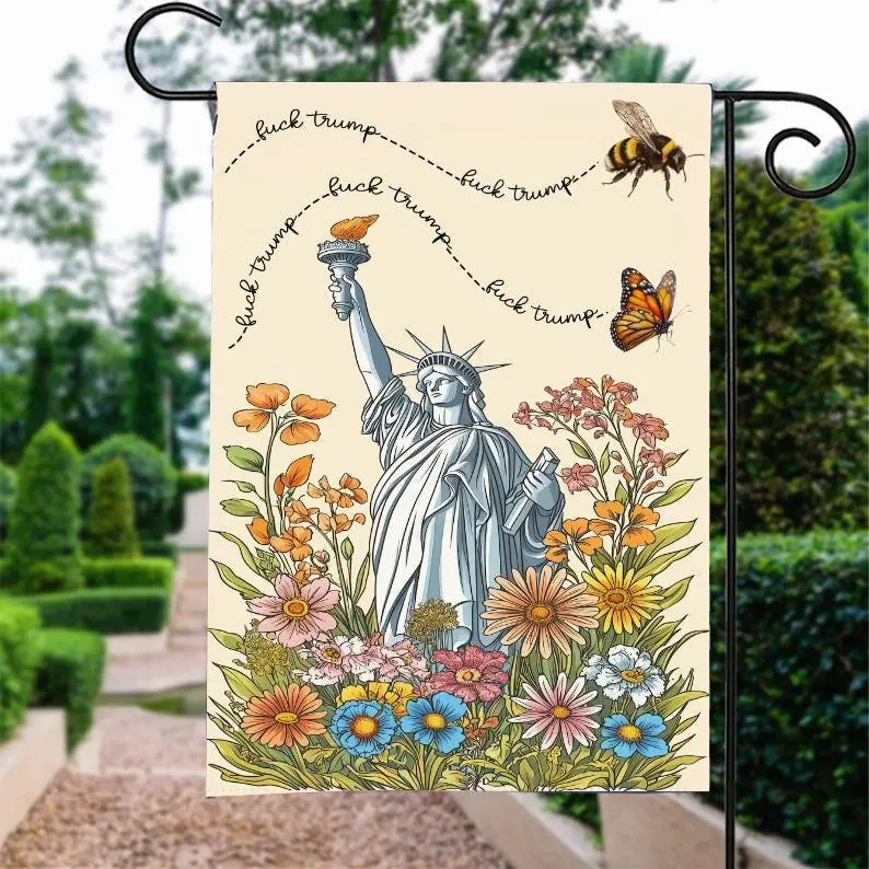 S^btle Anti Tr^mp Floral Garden Flag Anti Tr^mp Flower Design Yard Banner Anti Maga Democrat Garden Sign Gift Id-0129-qe4h