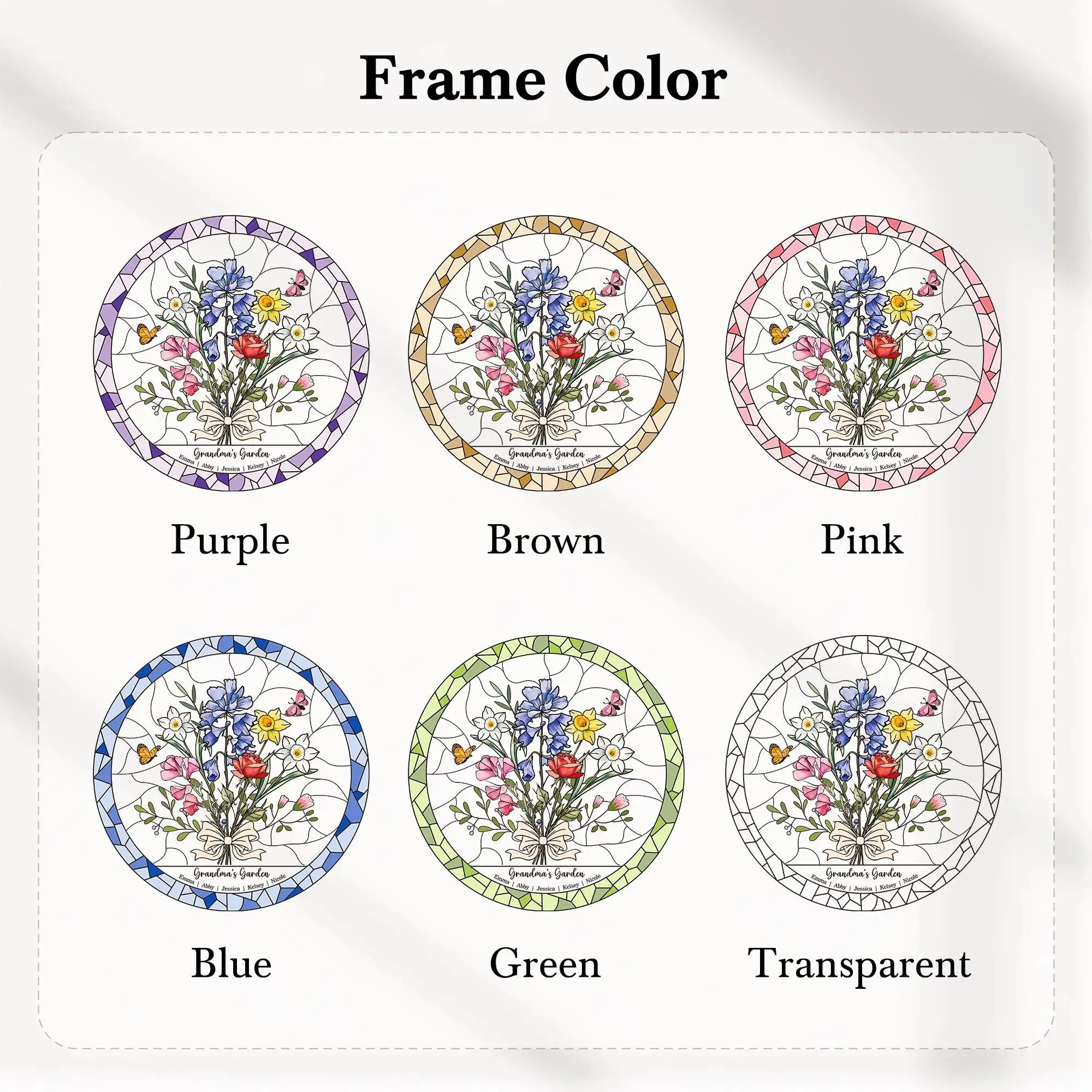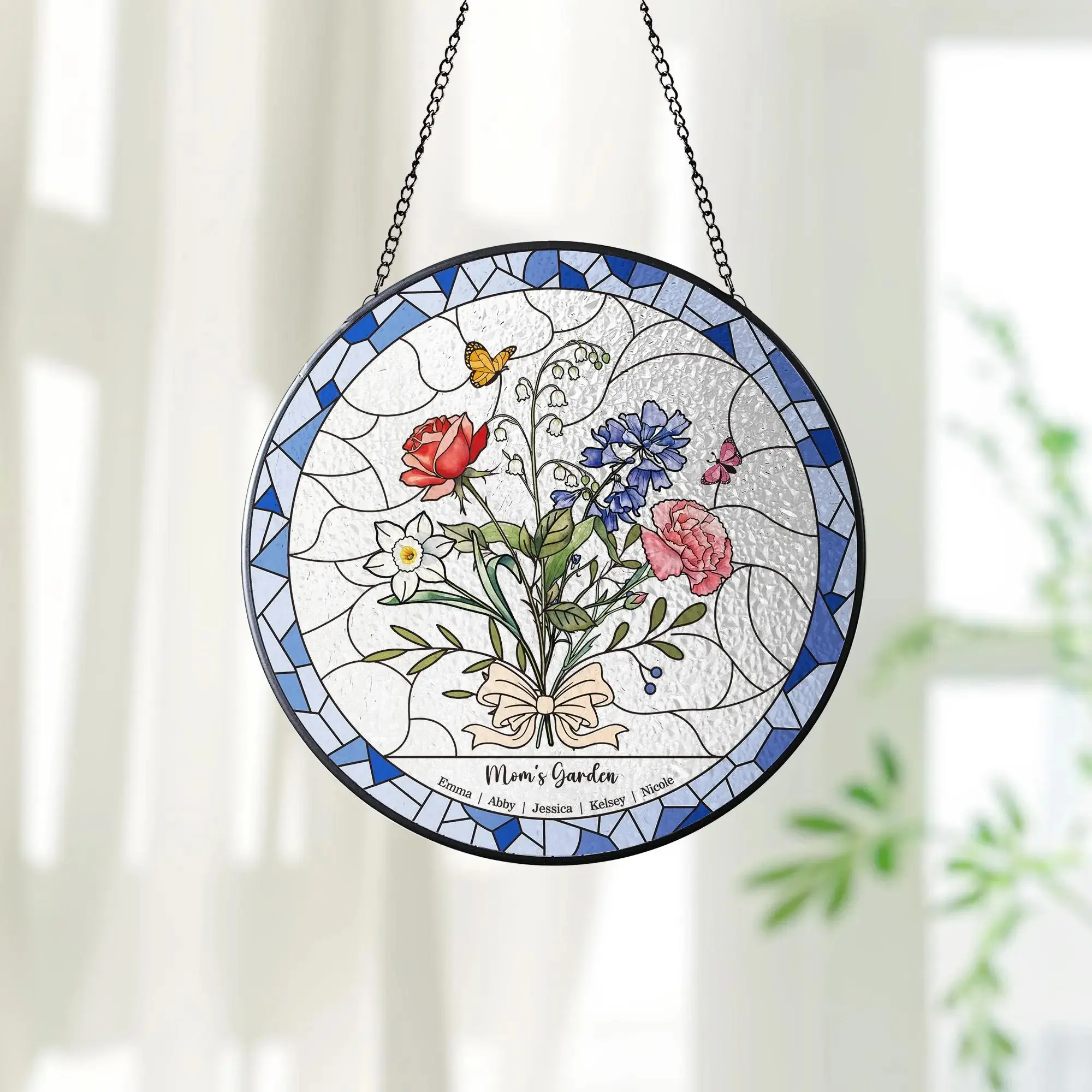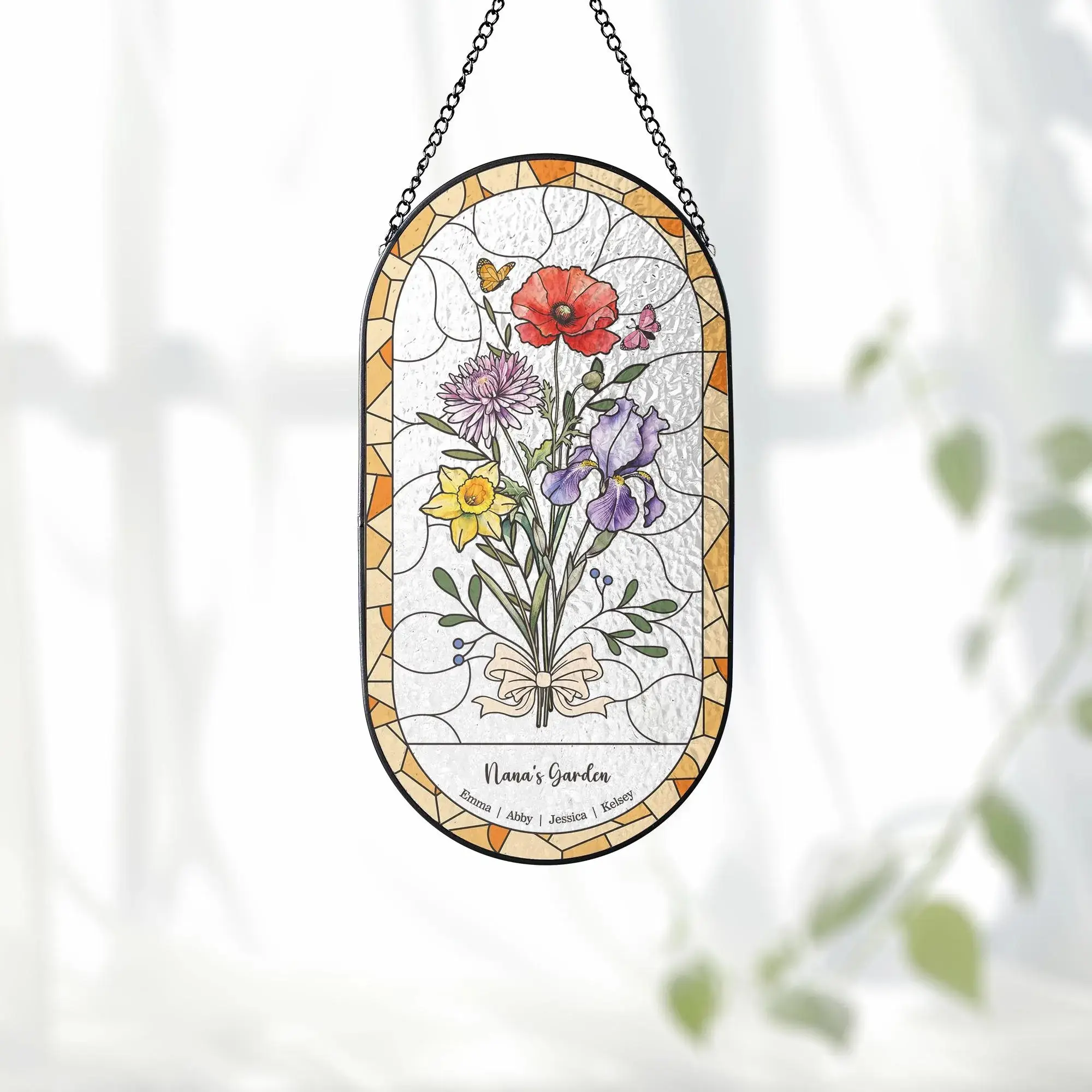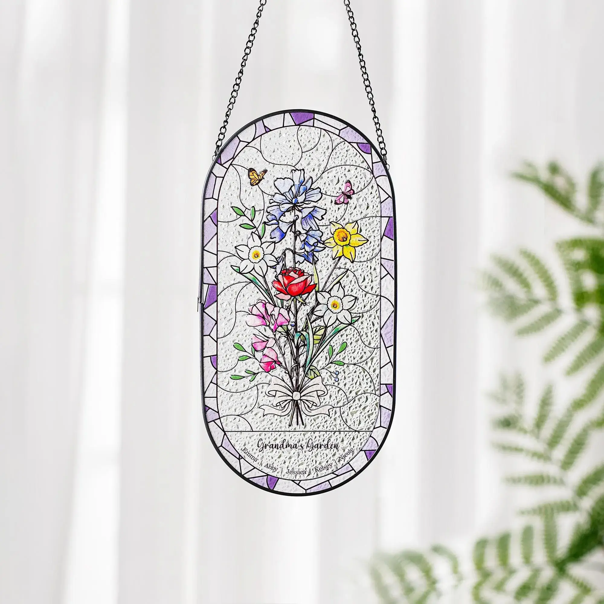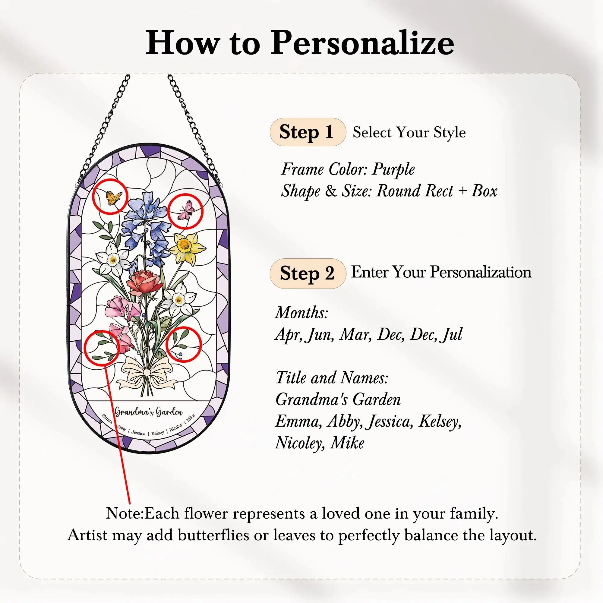 Delay Shipping Birth Flower Suncatcher with Magnetic Box, Personalized Stained Glass Window Hanging, Grandma's Garden Gift for Mom Grandma