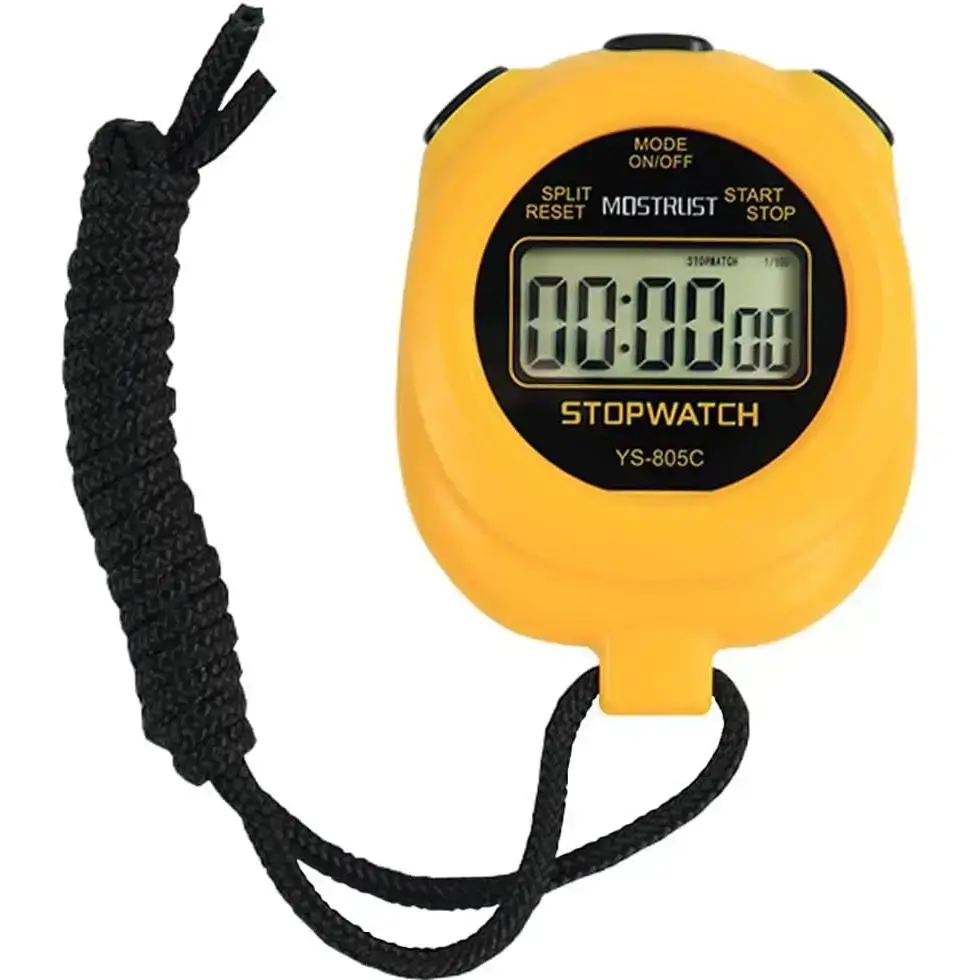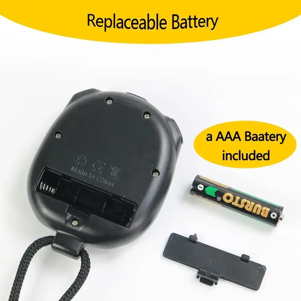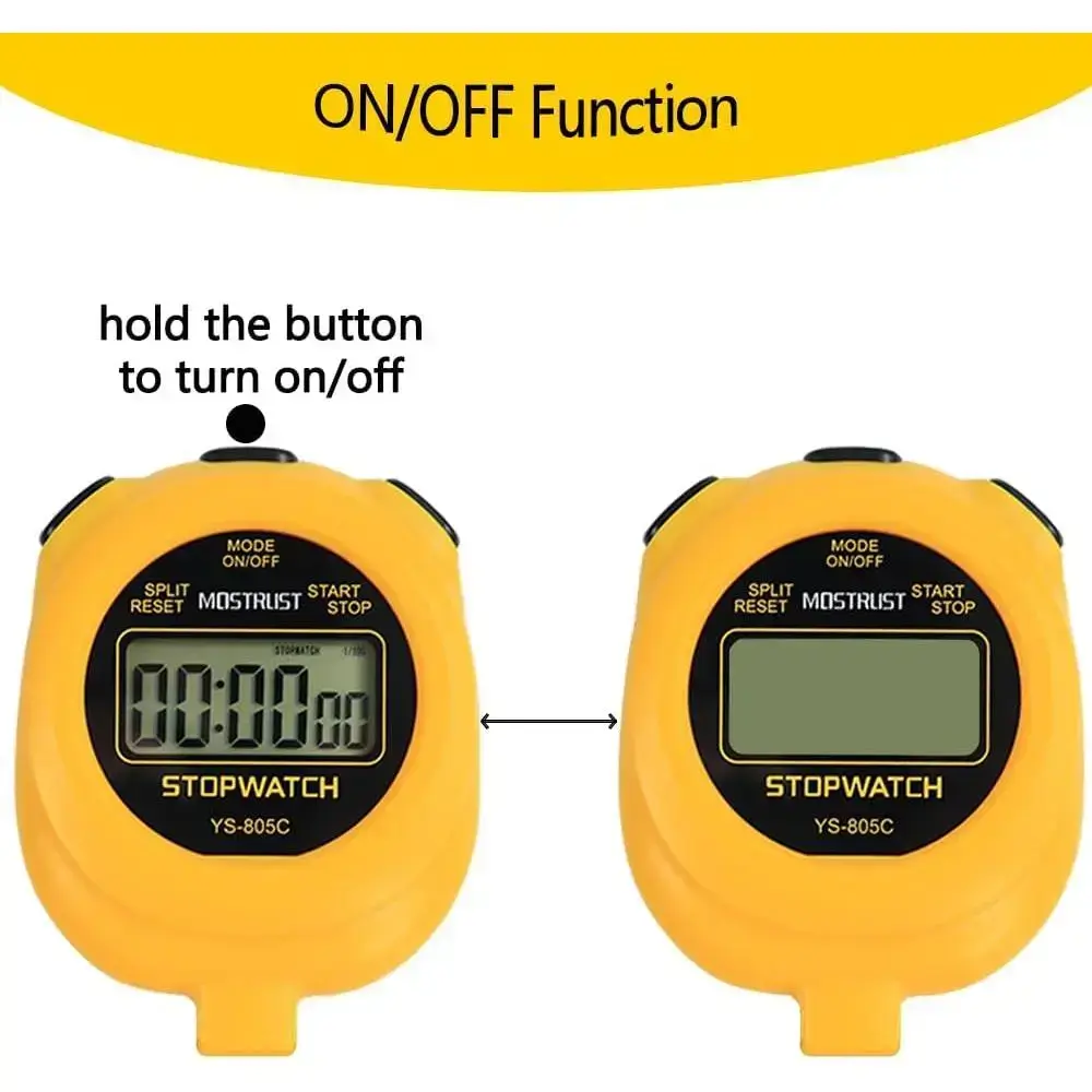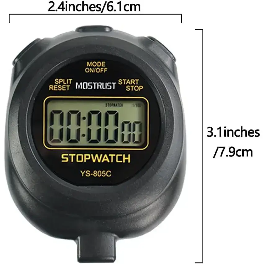 [Ergonomic Design]: This mostrust sports stopwatch timer is ergonomically designed for your hands, you will feel comfortable and flexible when you press the button.This basic stopwatch is light weight, easy to use, special for kids training or sports match. [Countdown Function]: MOSTRUST digital stopwatch timer with 47in lanyard (neck strap) has countdown function, max countdown time up to 9 hours 59 minutes 59 seconds. [Single Split/Lap]: Times single lap and split event measure up to 9 hours 59 minutes 59 seconds. [Easy to Use]: Only Stopwatch and countdown function with 3 buttons, displays minutes, seconds & 1/100th seconds, easy to view time and record data. [On/Off with AAA Battery]: This stopwatch uses one standard AAA battery which is very easy to find and install.The simple stopwatch has on/off function with one AAA battery(Included).Hold on the ON/OFF button 5 seconds to turn it on/off 2.1 Lap/Split time Memory storage 3.Measure up to 9 hours 59 minutes 59 seconds 4.Countdown Timer Mode 6.AAA Battery (Include) 7.Easy to Use MOSTRUST digital stopwatch timer with 47in lanyard (neck strap) has countdown function, max countdown time up to 9 hours 59 minutes 59 seconds. AAA Battery Stopwatch This stopwatch uses one standard AAA battery (Included) which is very easy to find and install. Child Friendly Stopwatch with ON OFF Function The simple stopwatch has on/off function with one AAA battery.Hold on the ON/OFF button 5 seconds to turn it on/off.
