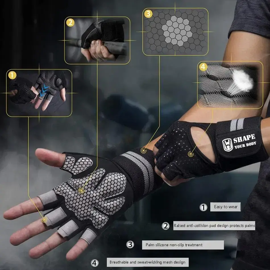 Women's Breathable Fingerless Lifting Gloves Ideal for Women These half-finger fitness gloves are designed specifically for women. They are perfect for strength training, equipment workouts, and home fitness sessions. The half-finger design ensures stable and comfortable movements. 🌟 The gloves maintain fingertip agility, allowing precise control when gripping bars, dumbbells, or other gear. You can use them for phone calls or adjusting equipment without removing them. 📱 The palm features anti-slip silicone particles, ensuring a secure hold on weights even when hands sweat. This minimizes the risk of slippage and enhances training safety. 💪 Extra padded cushioning in the palm reduces pressure from equipment, preventing calluses and abrasions. Breathable mesh fabric on the back promotes air circulation, keeping hands cool and dry. 🌬️ Lightweight and Durable These gloves are lightweight yet durable, offering flexibility and support. They move smoothly with your hands during dynamic movements. They provide reliable protection and a snug fit for women. 🏋️♀️ Whether you're deadlifting, bench pressing, or doing rowing exercises, these gloves help you stay focused on your form without distractions. Step up your fitness game with confidence and comfort. 🏋️♀️