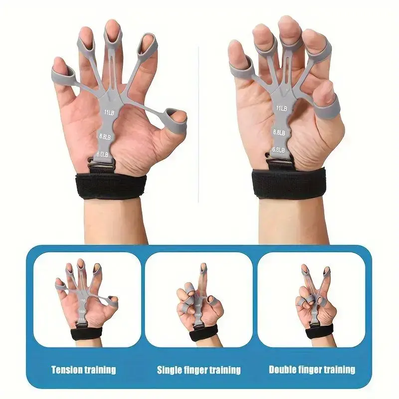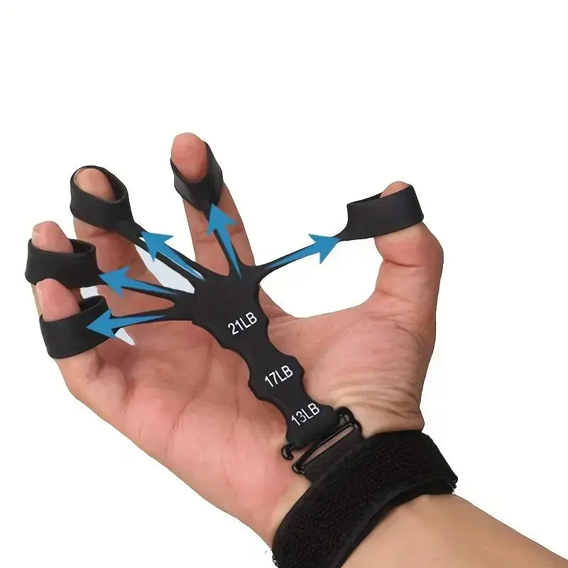Silicone finger trainer, hand-held strengthener (with wristband), home gym exercise hand training tool, exercise hand grip