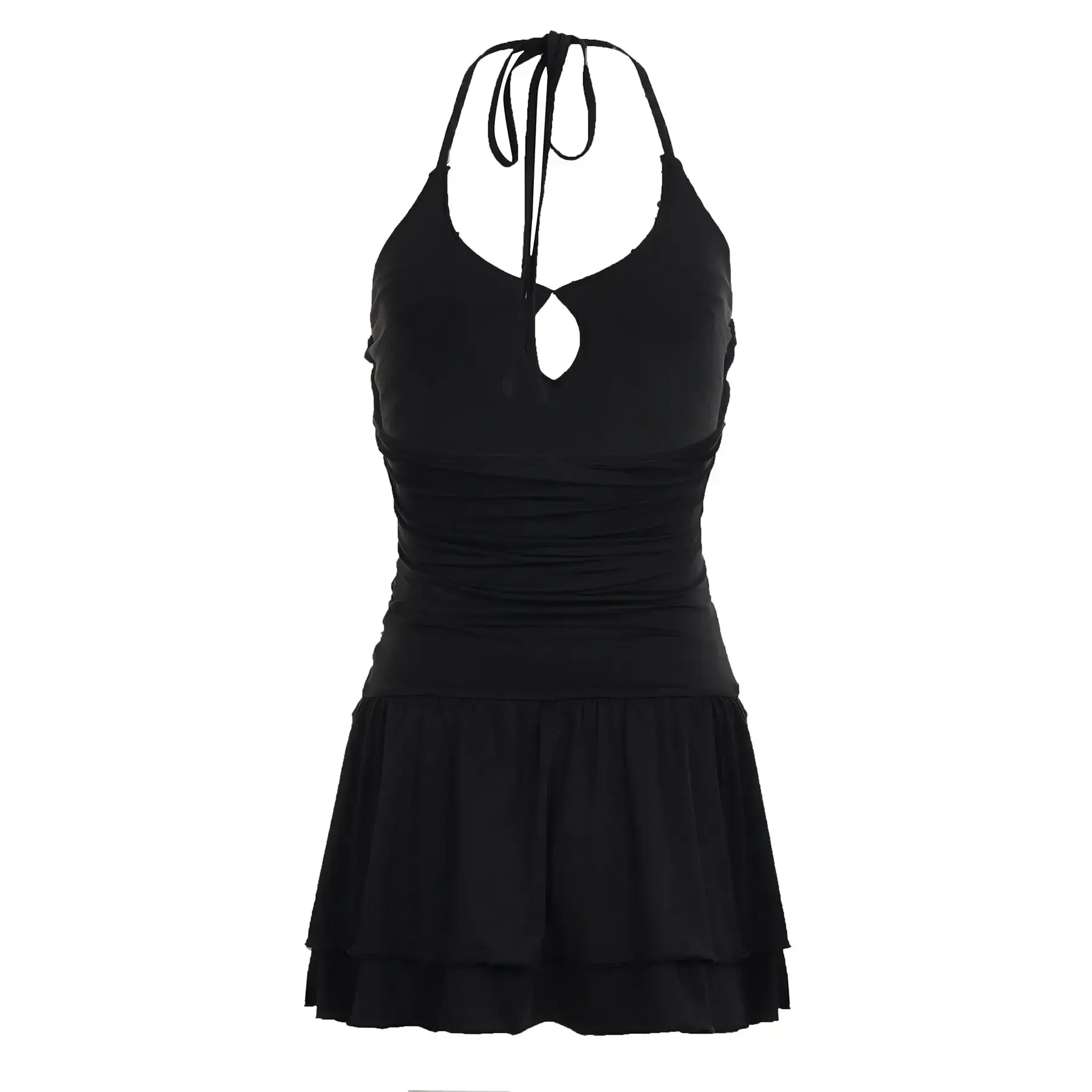 Women's Satin Halter Neck Dress Deep V Neck Backless Flared A Line Mini Party Shapewear Halter Fit & Flare Mini Dress Dresses