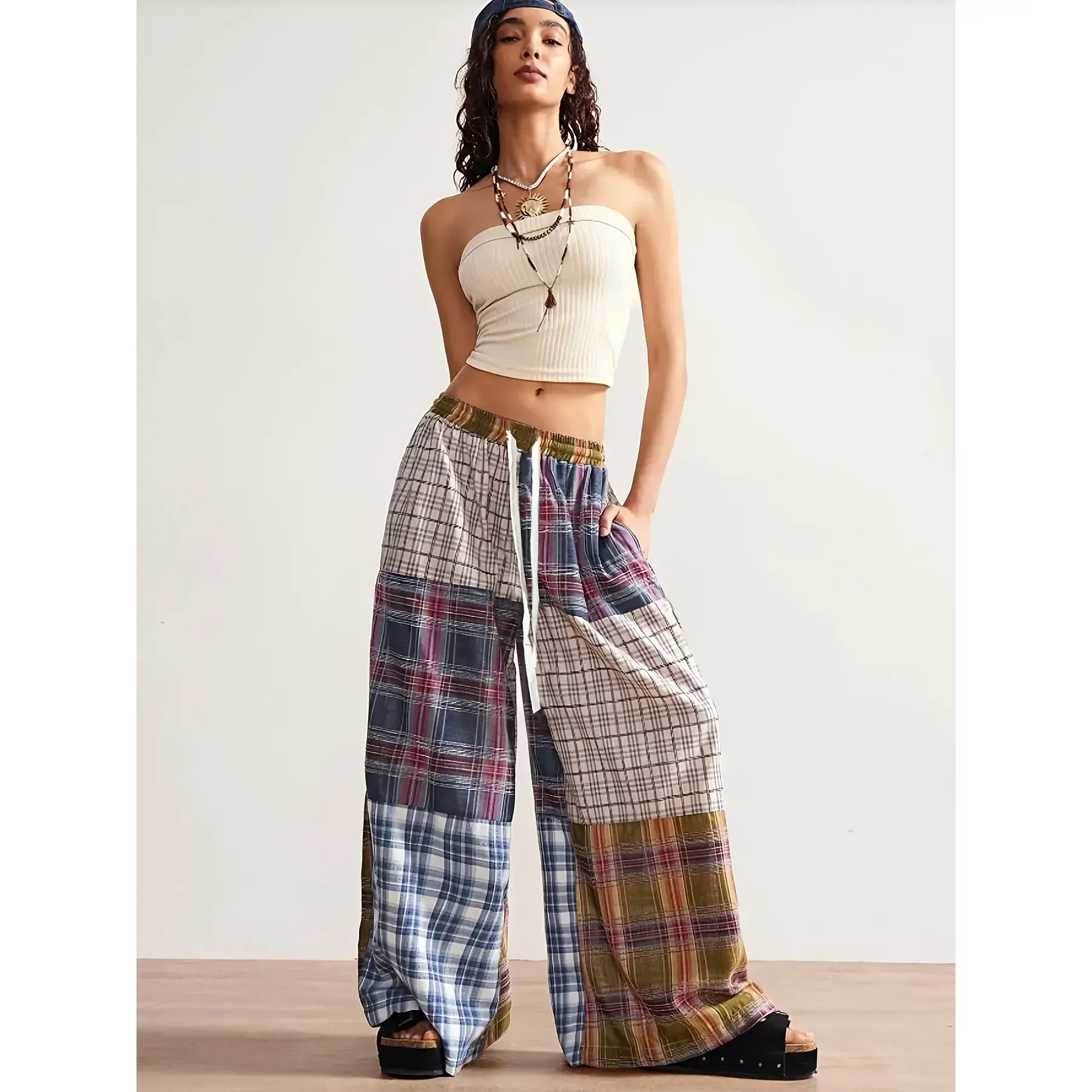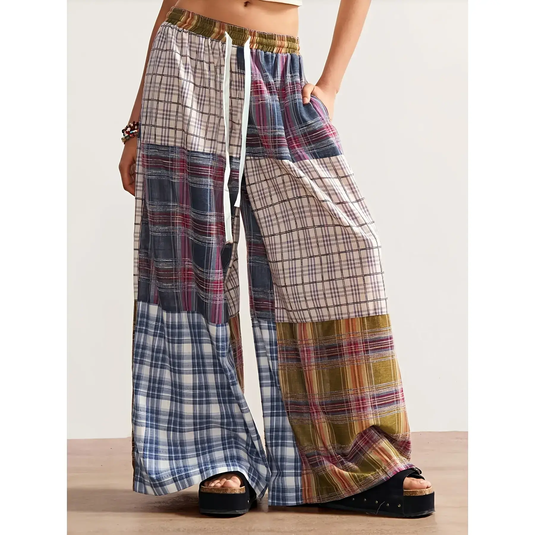 Women's fashionable loose long checkered pants, comfortable design for all seasons, ideal choice for daily wear and leisure, fashionable women's bottomsRAIMENTRY