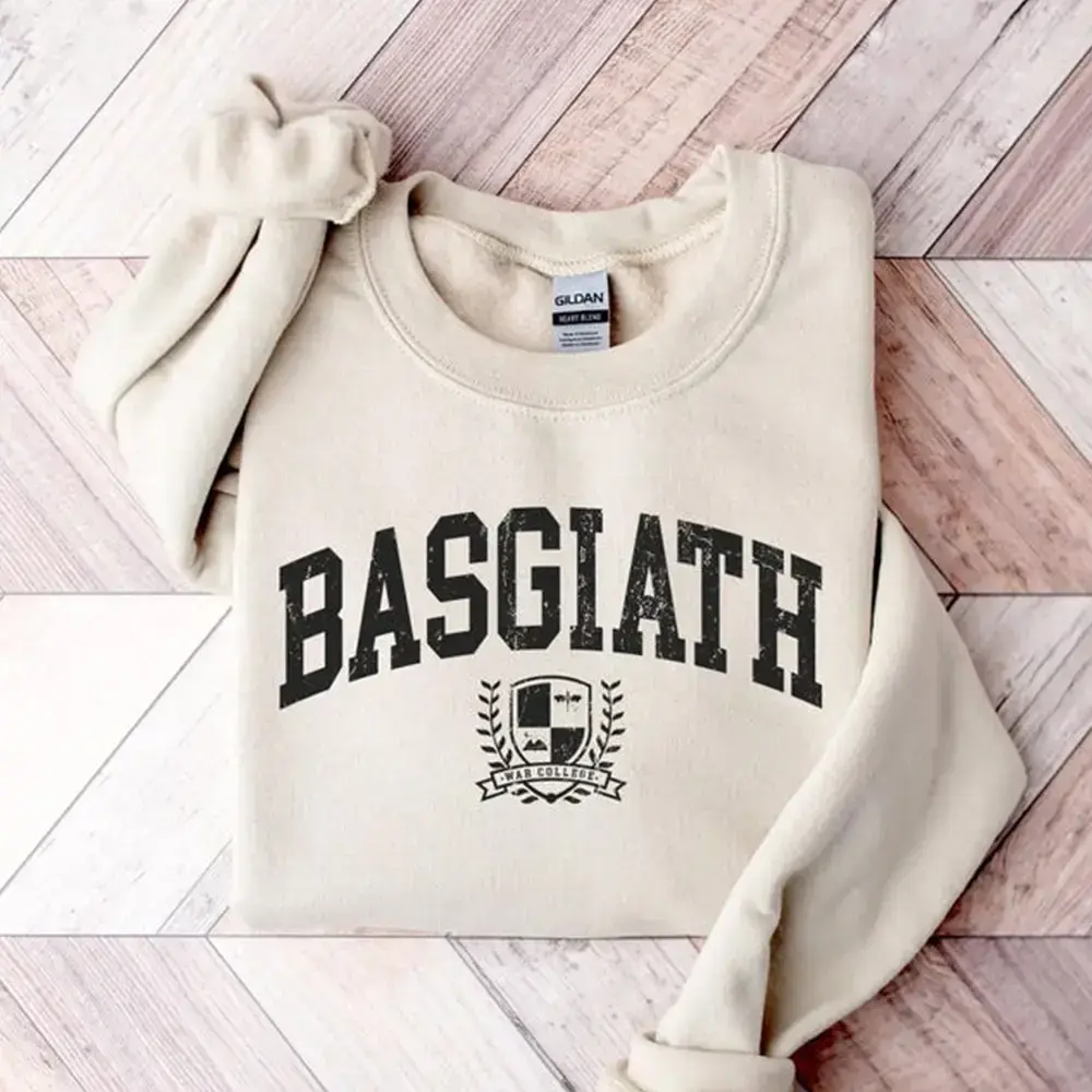 Basgiath War College Sweatshirt - Perfect for Fans of Fourth Wing and Violet Sorrengail, Fantasy Book Dragon Step into the world of dragon riders with our Basgiath War College Sweatshirt ️🐉. Inspired by the hit fantasy novel Fourth Wing, this sweatshirt is perfect for fans of Violet Sorrengail, dragon riders, and epic fantasy adventures. With a collegiate-style design and cozy fit, it’s a must-have for any book lover’s wardrobe. 🔥 Perfect For: · Fourth Wing & fantasy book fans · Readers who love Violet Sorrengail & dragon rider stories · Cozy fall & winter bookish outfits · Gifting to fantasy lovers and book club friends 🧵 Product Details: · Unisex sizing for relaxed, comfy fit (check size chart in photos) · Solid colors: 50% Cotton / 50% Polyester · Heather colors: 40% Cotton / 60% Polyester · Pre-shrunk for lasting wear · Double-needle stitched throughout for durability · Ribbed collar, cuffs & waistband with spandex · Shoulder-to-shoulder taping for comfort 📏 Sizing & Care: