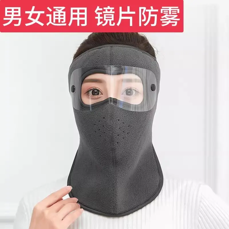 Winter windproof mask with detachable goggles, men's and women's thick wool lining full face mask, suitable for outdoor cycling and motorcycle riding in cold weather protection