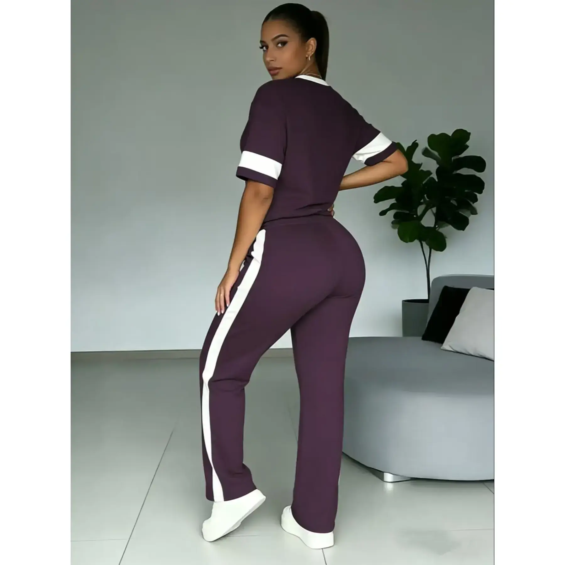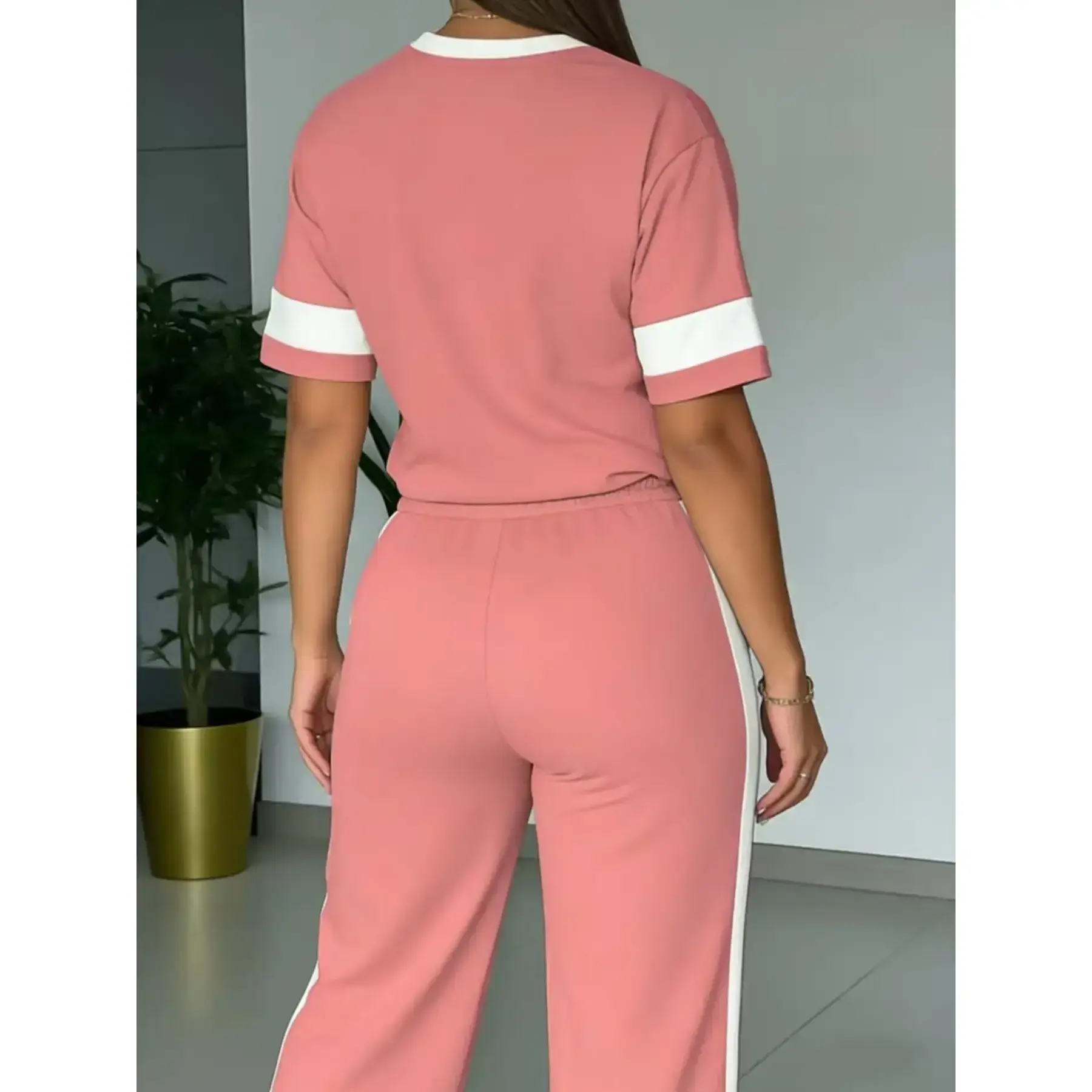 Women's plus size fit fashionable casual gradient heart-shaped printed round neck short sleeved T-shirt and straight leg pants set
