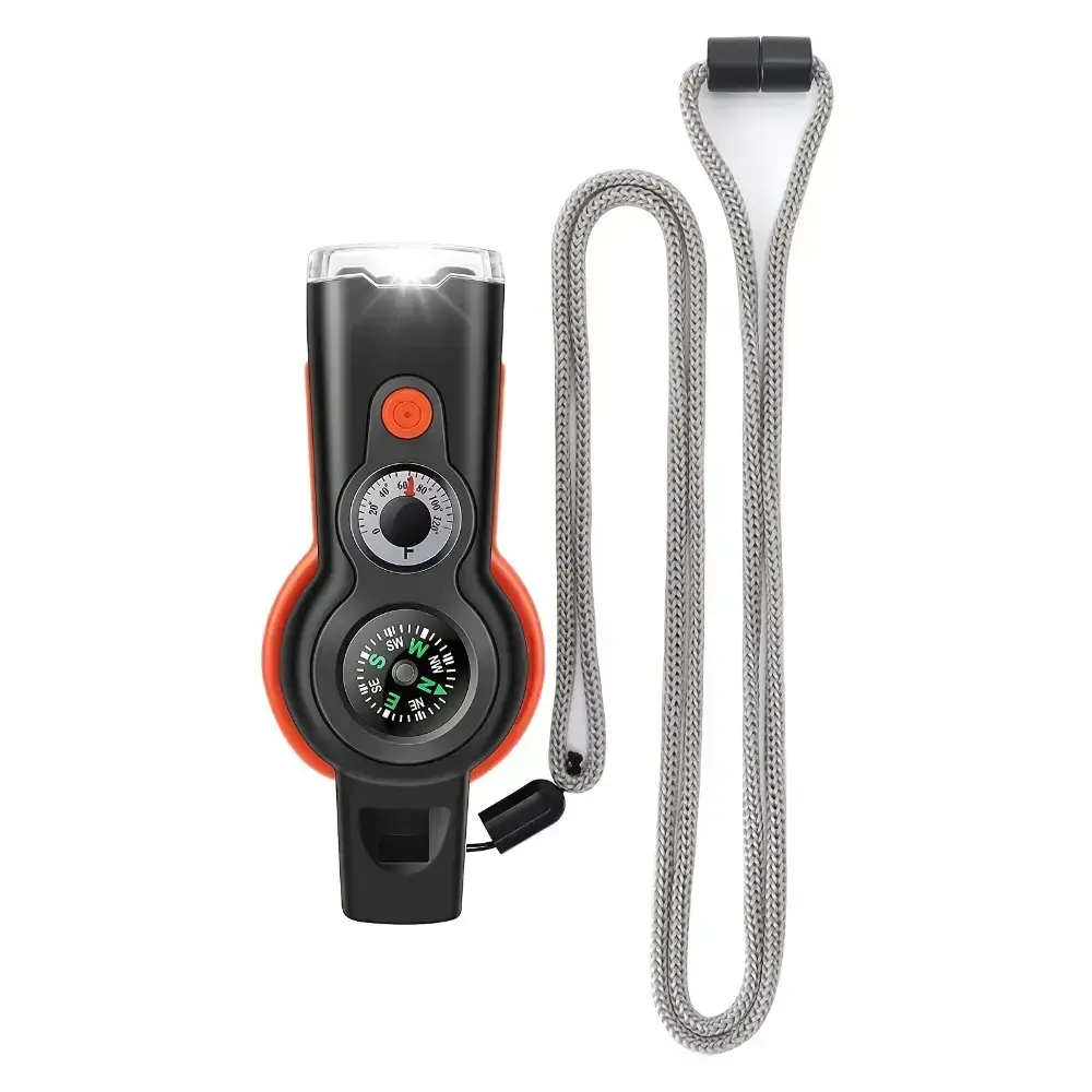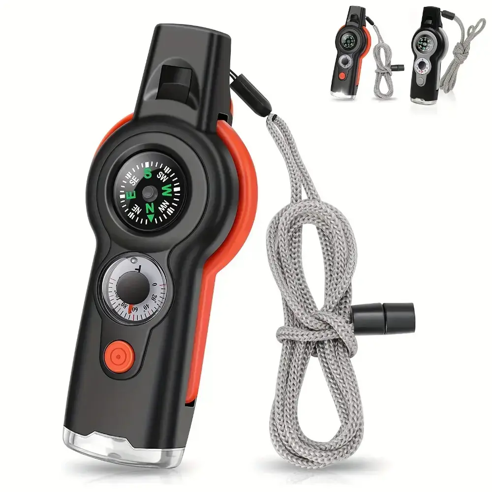 1 7-in-1 emergency survival function whistle, with Lanya's outdoor multi-functional tool safety whistle, emergency survival equipment, very suitable for kayaking, boating, hiking, camping, climbing, hunting, fishing, rescue signalsRAIMENTRY