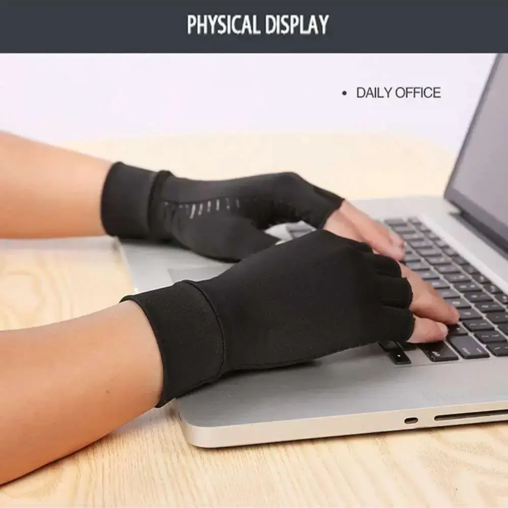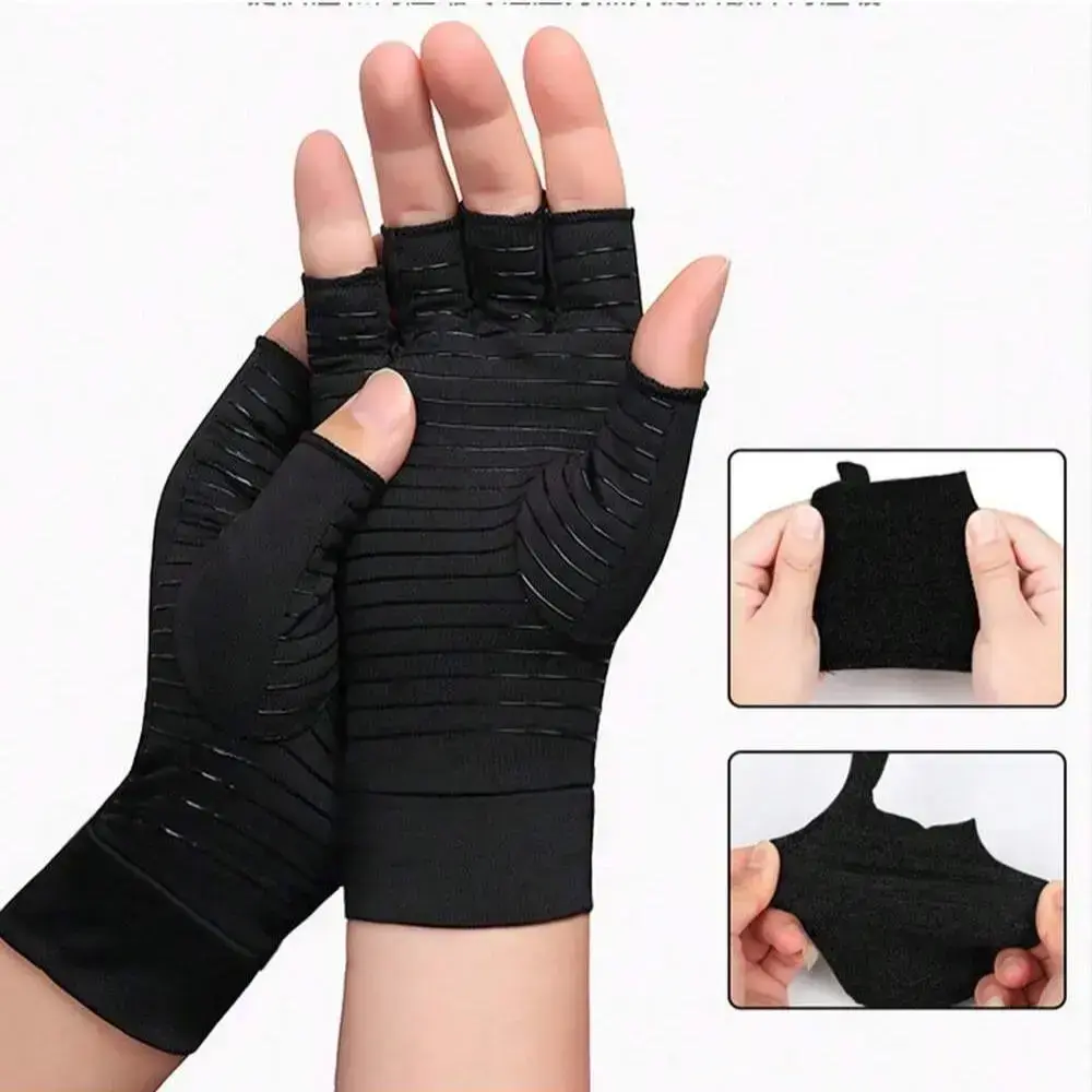 【360° Compression】: Designed with a 360° compression fit, these gloves ensure even pressure distribution, aiding in circulation and reducing swelling. 【Breathability】: Crafted from breathable fabric, these gloves keep your hands cool and dry, offering comfort during extended periods of wear. 【Open Finger Design】: The open fingertip design facilitates touchscreen use and daily tasks, providing practicality without compromising finger support. 【Secure Fit】: Featuring a Velcro wrist strap for a secure, adjustable fit and a non-slip texture, these gloves enhance grip for everyday activities.