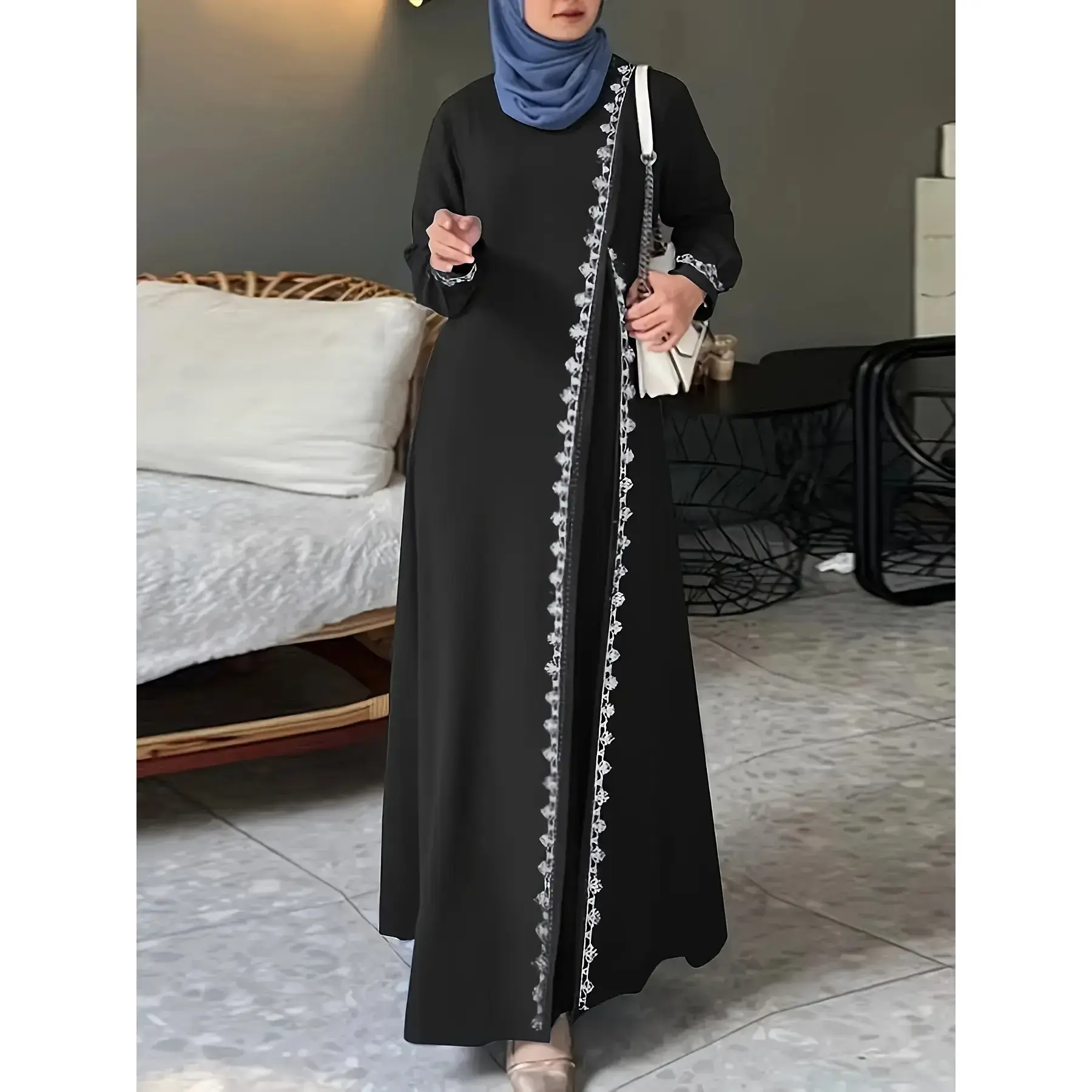 Elegant spring lace knitted dress, Muslim Türkiye gown, loose women's long sleeve round neck Islamic gown, Muslim women's dressRAIMENTRY