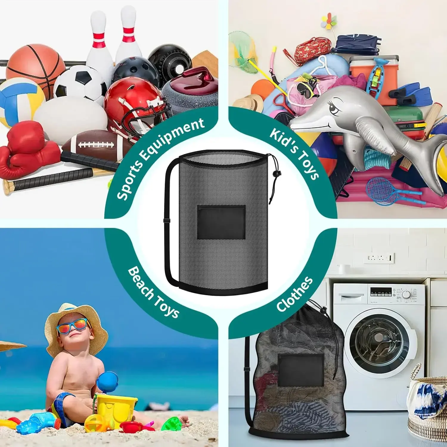 Oversized football bag, 40 inch x 30 inch drawstring mesh bag with pockets, coach heavy-duty sports mesh bag, storage bag for basketball, volleyball, fitness equipment, swimming equipment
