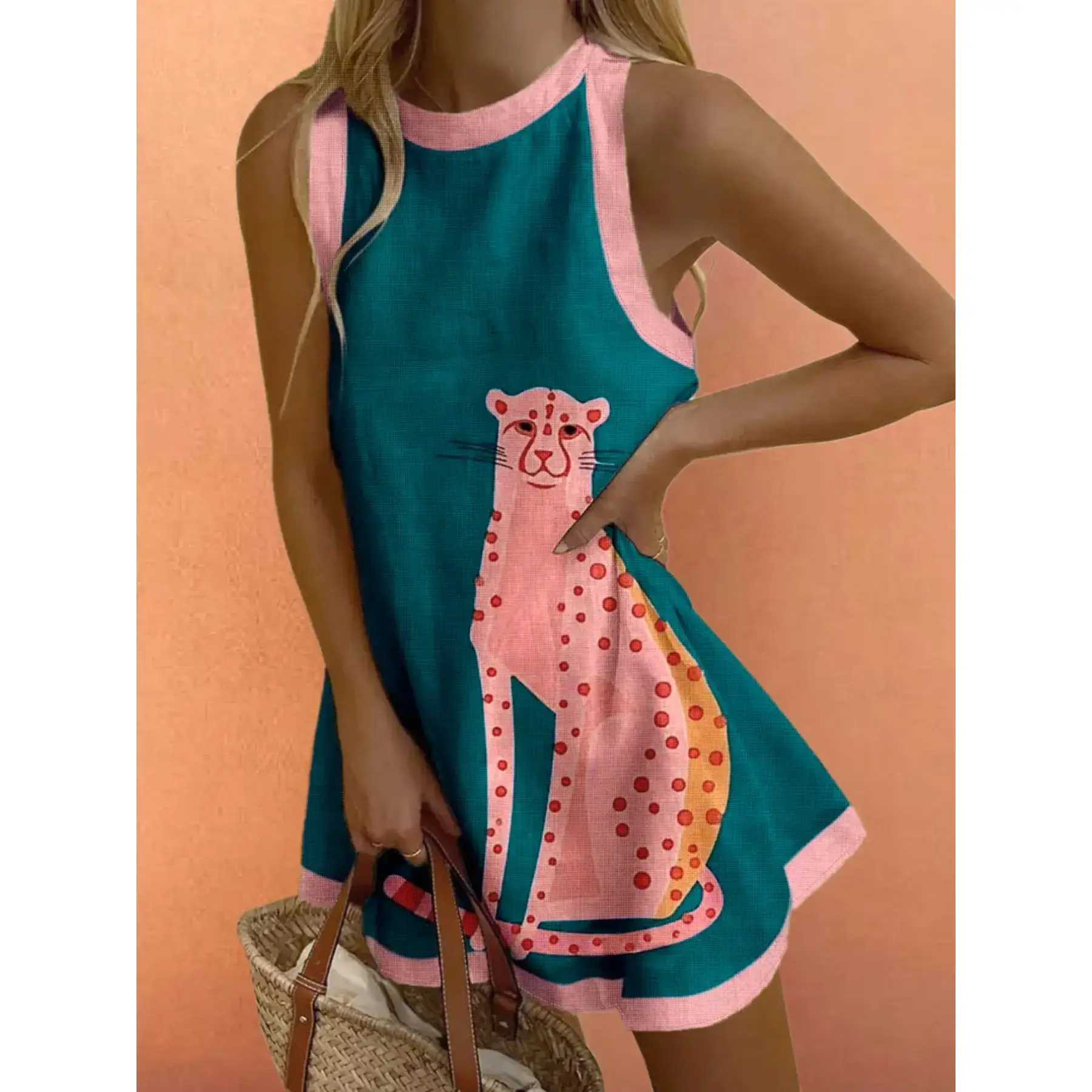 【Unique Print】: Features a striking lemon sardine print combined with blue and white check patterns, adding a playful touch to your wardrobe. 【Loose Fit】: Designed for a loose-fitting silhouette that promotes ease of movement and breathability during warm spring and summer days. 【Sleeveless Style】: The sleeveless cut enhances airflow, keeping you cool while showcasing your arms for a fresh, breezy look. 【Color Contrast】: The use of contrasting colors creates a vibrant visual appeal, ensuring you stand out during beach getaways or casual outings. 【Practical Ethos】: With no added complications or unnecessary features, this dress offers straightforward wearability for carefree summer outings.