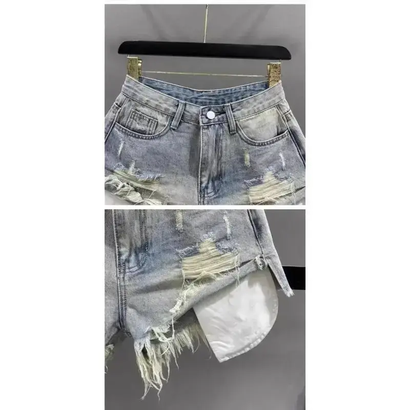 Korean Vintage Blue Sexy Ripped Jeans for Women Patchwork A-line High-waisted Denim Ultra Shorts Bottoms WomenswearRAIMENTRY