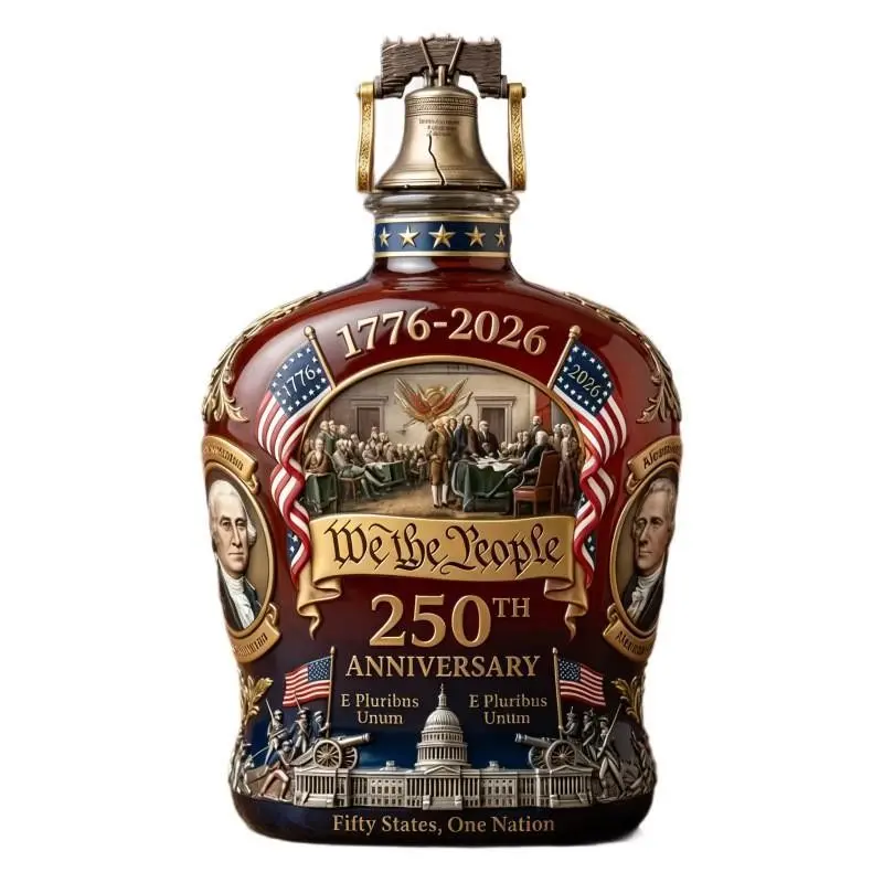 We the People 250th Anniversary Decanter, 1776-2026 Patriotic American Whiskey Bottle, Fifty States One Nation Collectible