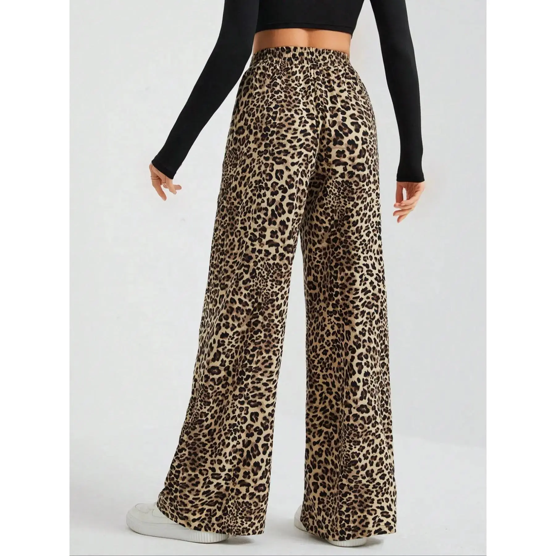 Women's Leopard Print Wide Leg Sweatpants, Casual Streetwear Pants, Casual Comfy Trousers for Daily Wear, Ladies Bottoms for Fall & Winter