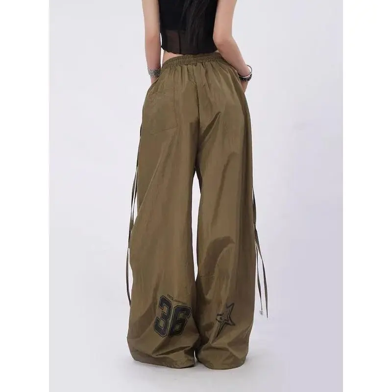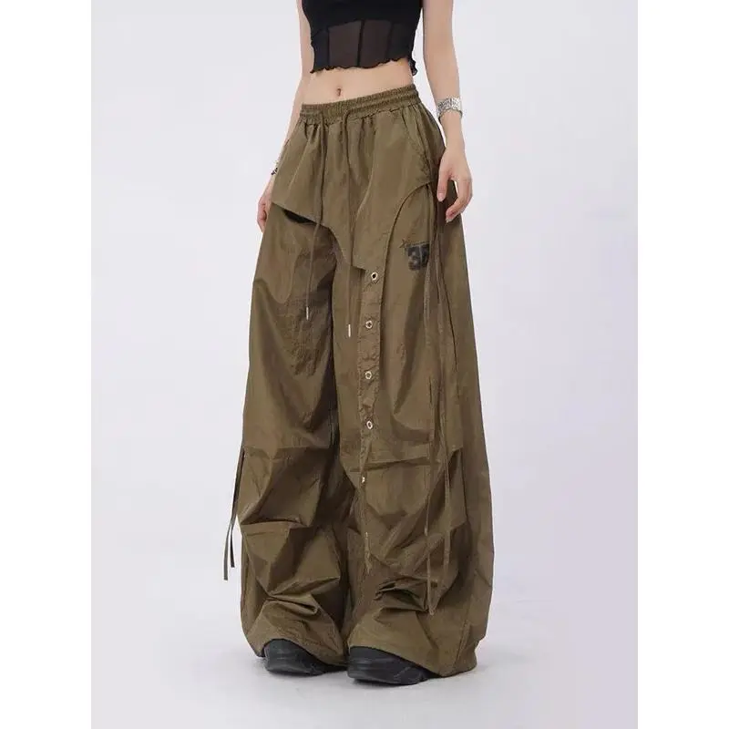 Women’s Y2K streetwear cargo pants - high-waisted, baggy patchwork parachute pants; hip-hop style, versatile for any outfit; jazz dance sweatpants; women’s bottoms; basic linen pants; baggy sweatpants; casual green pants