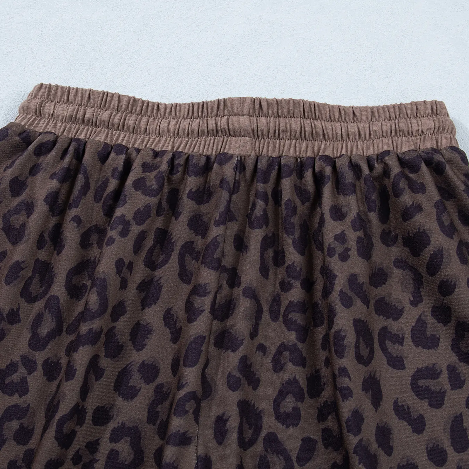 Women's Leopard Print Wide Leg Sweatpants, Casual Streetwear Pants, Casual Comfy Trousers for Daily Wear, Ladies Bottoms for Fall & Winter