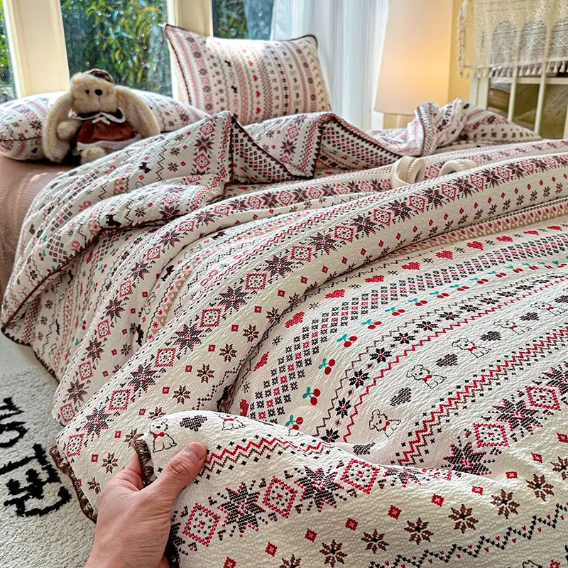 YHFYHF Thick Warm Snowflake Velvet Bohemian Floral Print Quilt, Soft High-End Hotel Bedding, Elegant Home & Dorm Design, Modern Style, Boho Floral Quilt