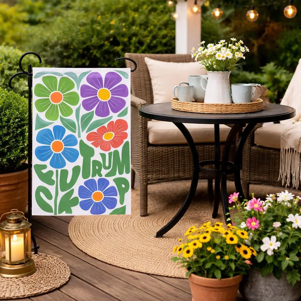Retro Anti Tr^mp Garden Flag Groovy Fck Tr^mp Yard Decor Funny Sarcastic Political Banner Floral Liberal Gift Aesthetic Outdoor Sign
