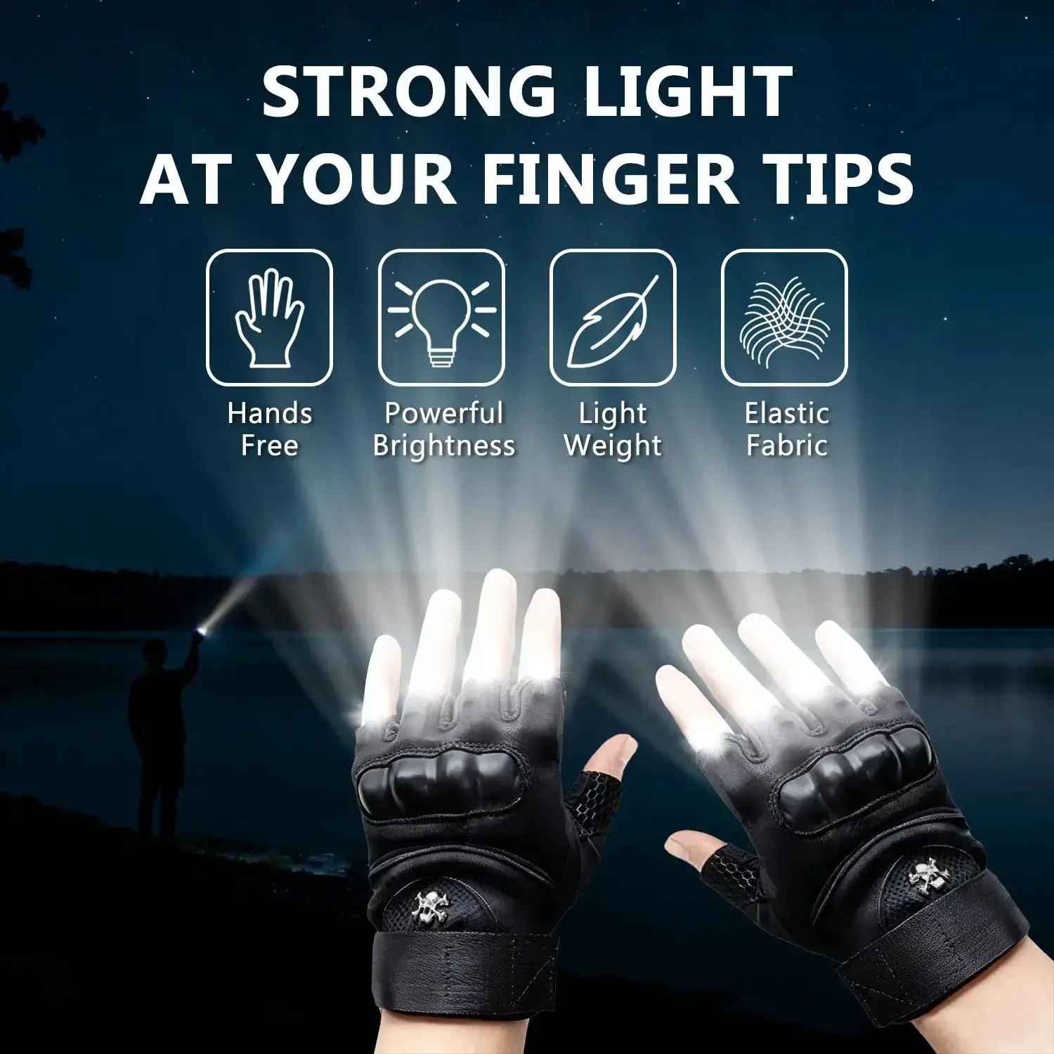 LED Flashlight Gloves,Half Finger Lighted Gloves,Adjustable Wrist Strap,Flashlight Gloves with 8 LED Cool Gadget Finger Lights for for Camping Fishing Repairing,Cycling,Running Camping,Christmas Birthday Gifts for Men and WomenRAIMENTRY