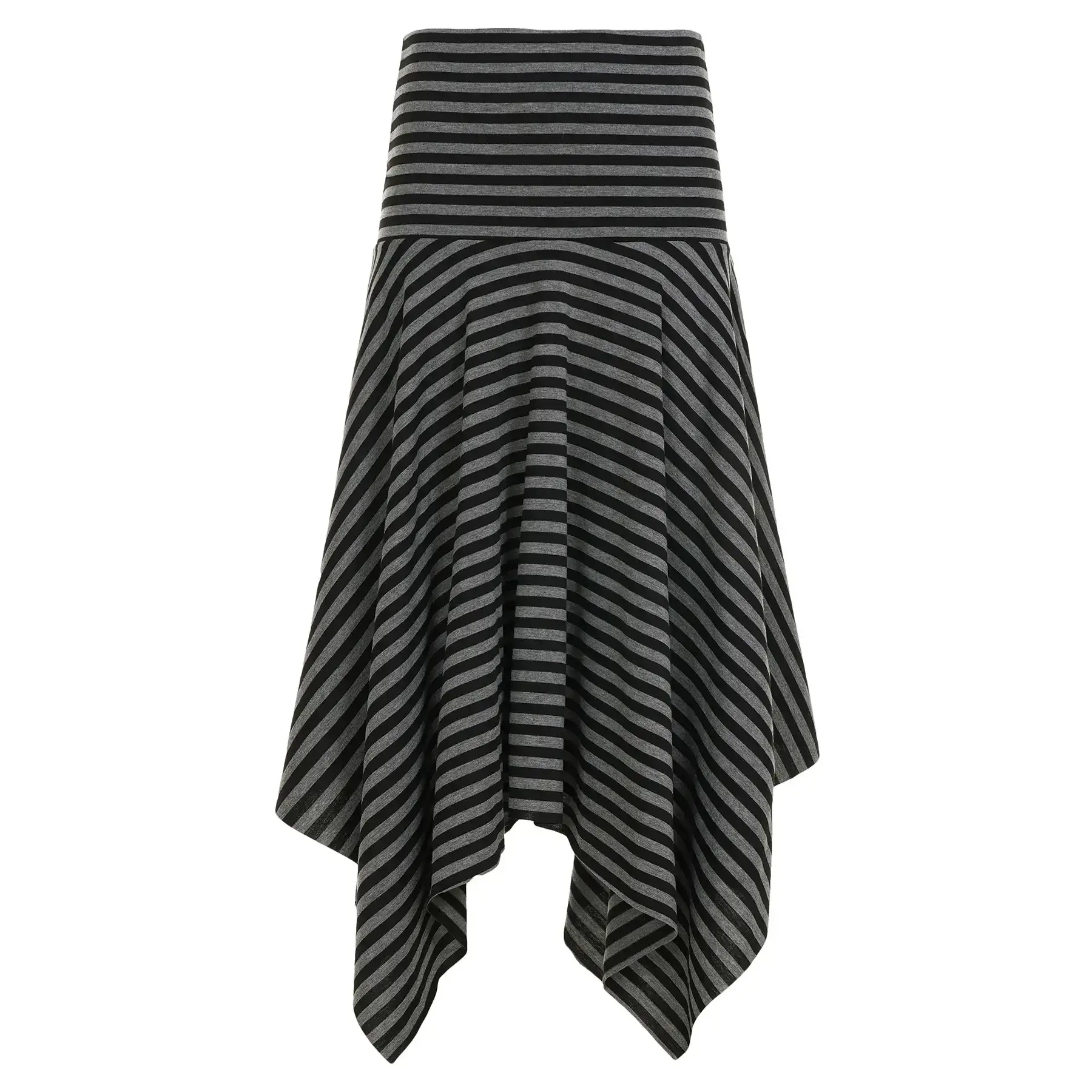 Women's street fashion skirt with loose knit long style, color blocked stripe design, all season woven fabric, casual university aesthetics