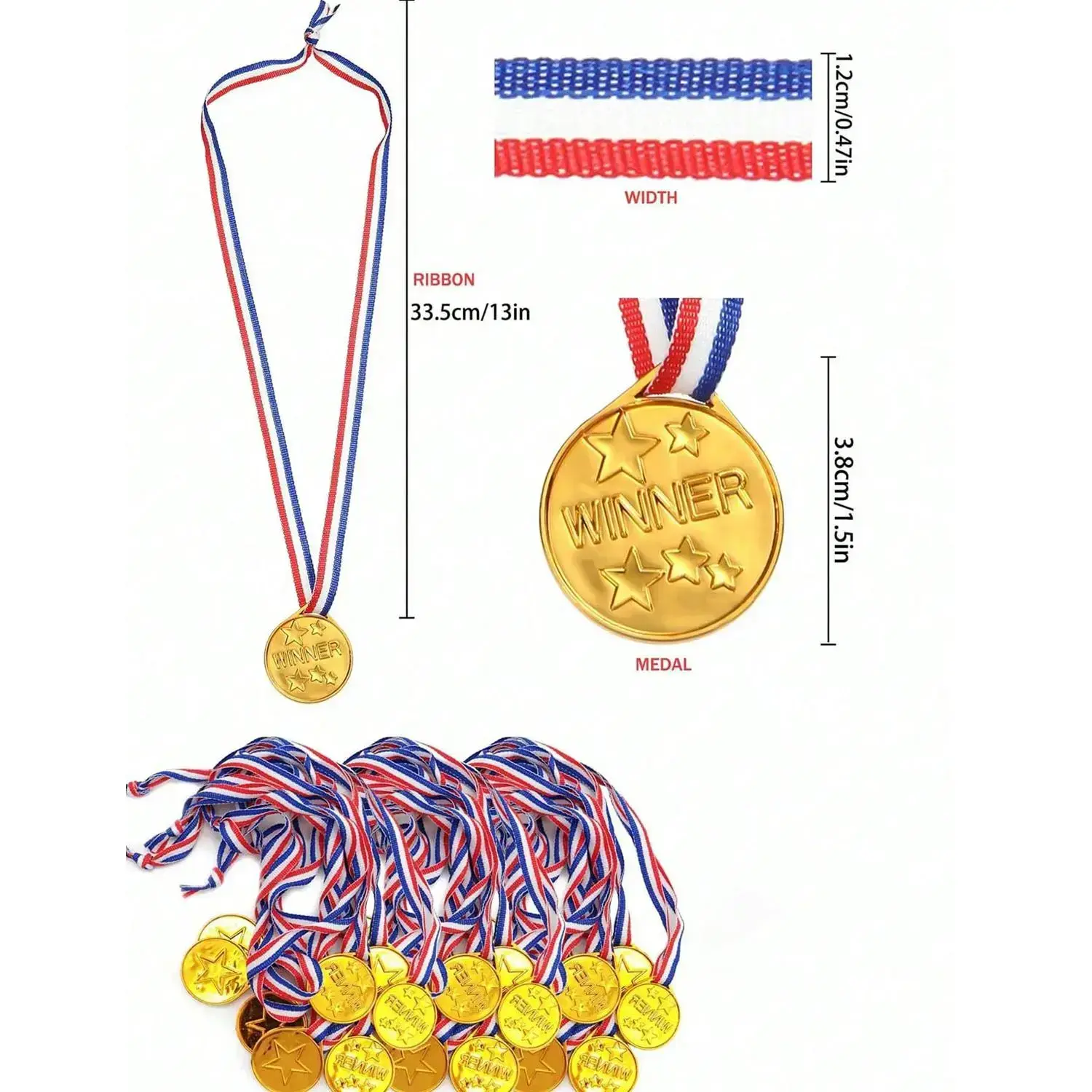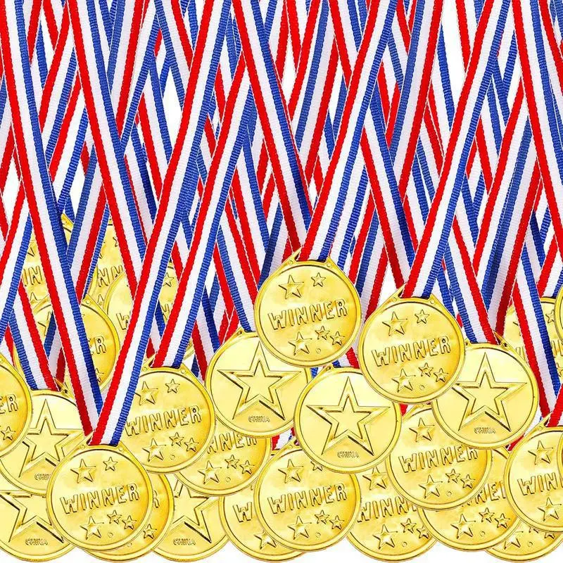 【Award Recognition】: This gold color plastic medal provides a tangible reward for achievements in various competitions and events. 【Multiple Uses】: Perfect for sports events, competitions, talent shows, spelling bees, birthday parties, and classroom incentives. 【Non-Sensitive Material】: Crafted from non-sensitive materials, ensuring safe use for participants of all ages, promoting inclusivity. 【Generous Quantity】: Available in sets of 10, 30, or 50 medals, catering to different group sizes and event requirements. 【Easy Distribution】: These medals are lightweight and easy to distribute during events, making them a practical choice for busy hosts.