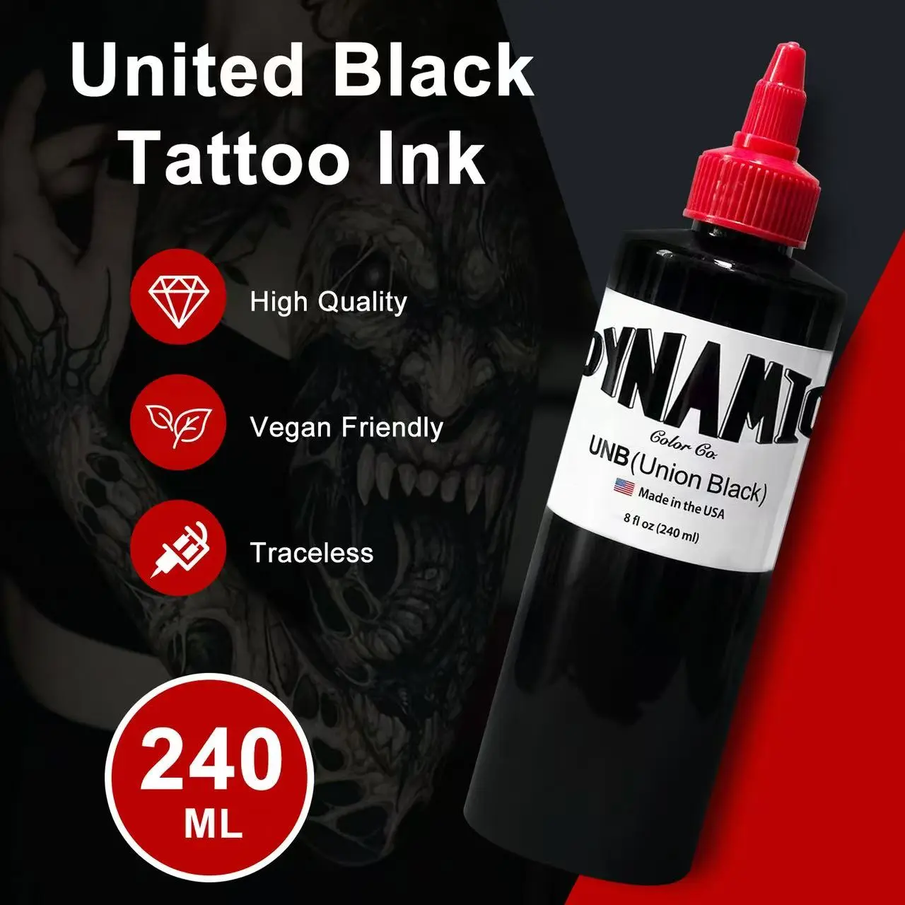 Union Black Tattoo Ink 8 Ounces 240ml REACH EU US Compliant Toxin Free Safe for Pros Beginners Premium Long Lasting Pigment