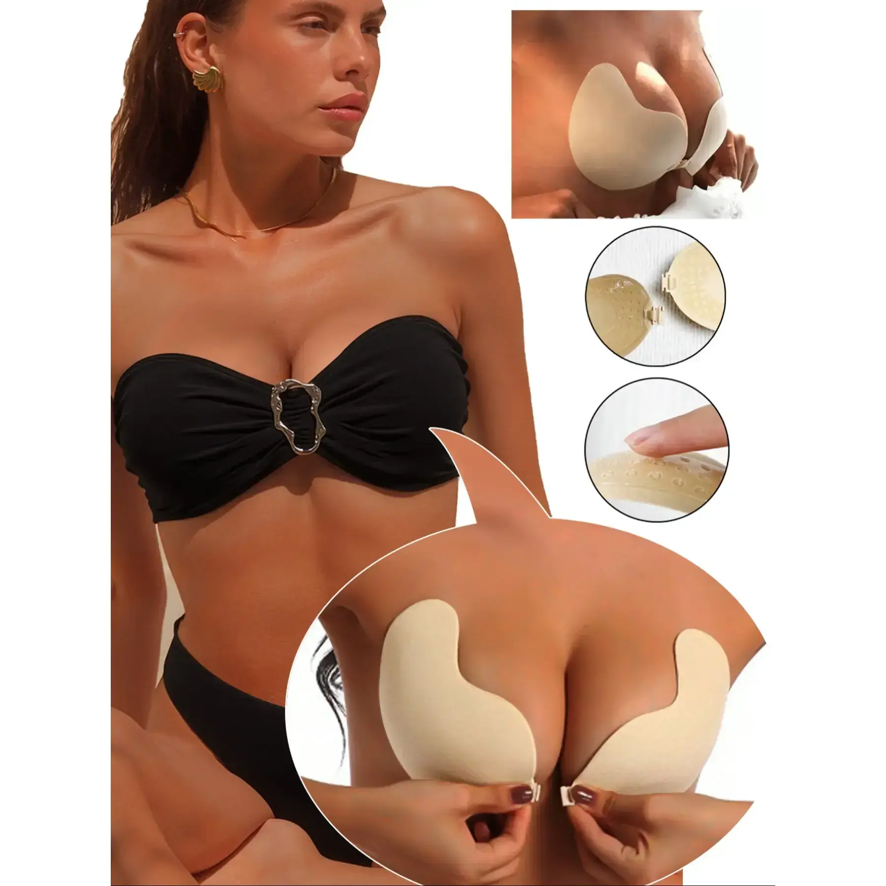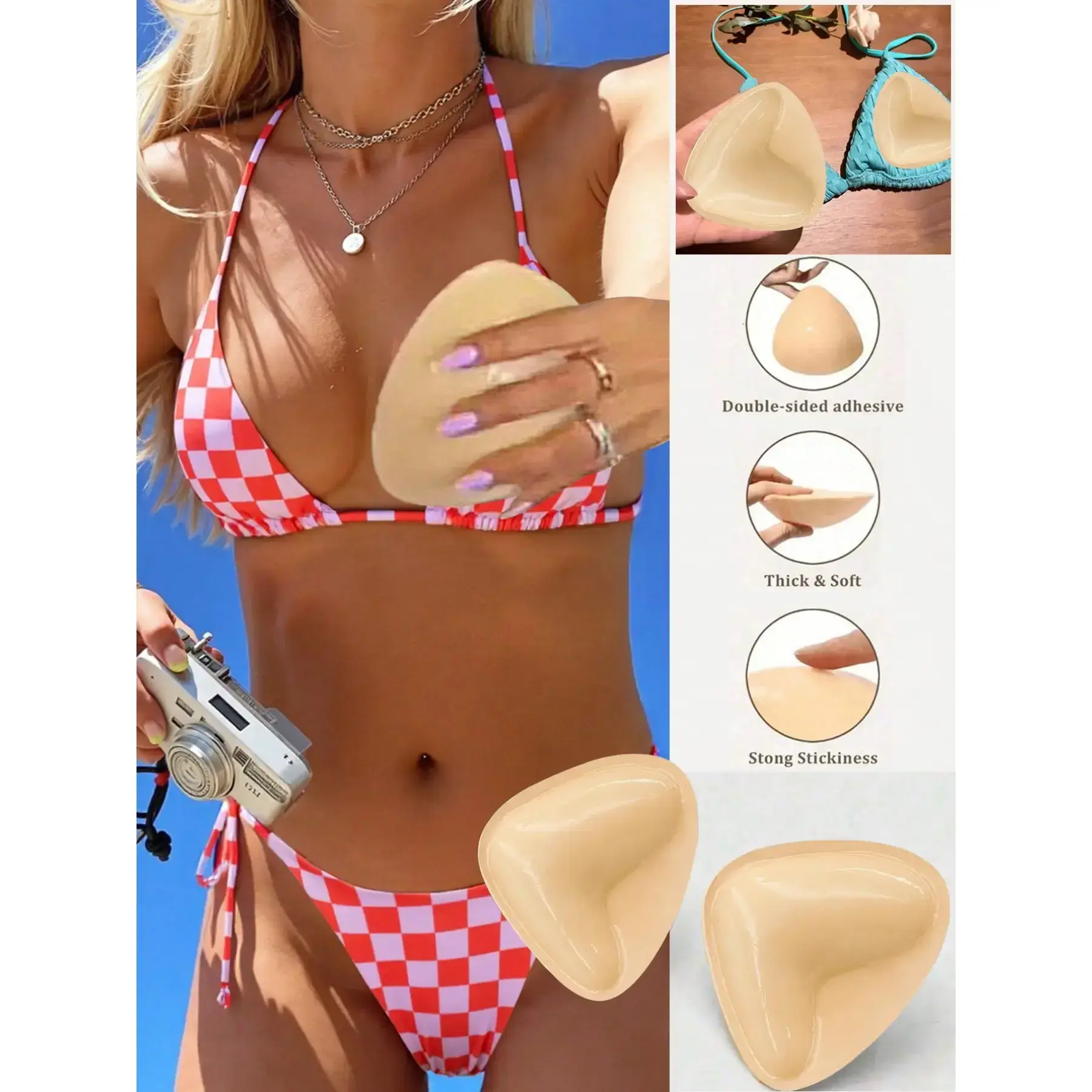 Reusable self-adhesive breast pads, waterproof bikini breast pads, thick invisible push up pads, adhesive bra pads, 2-piece set, ideal for swimmingRAIMENTRY