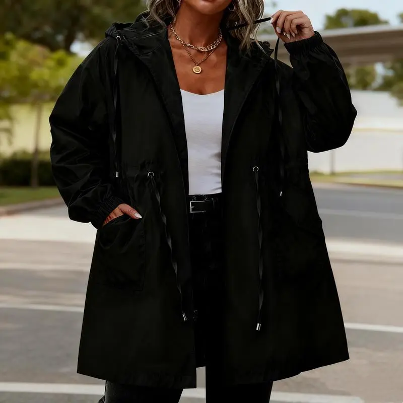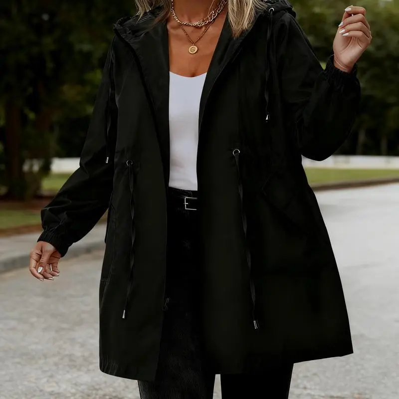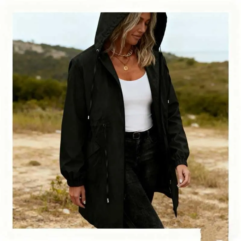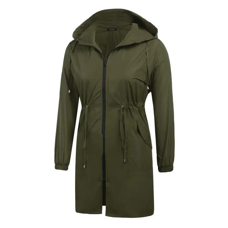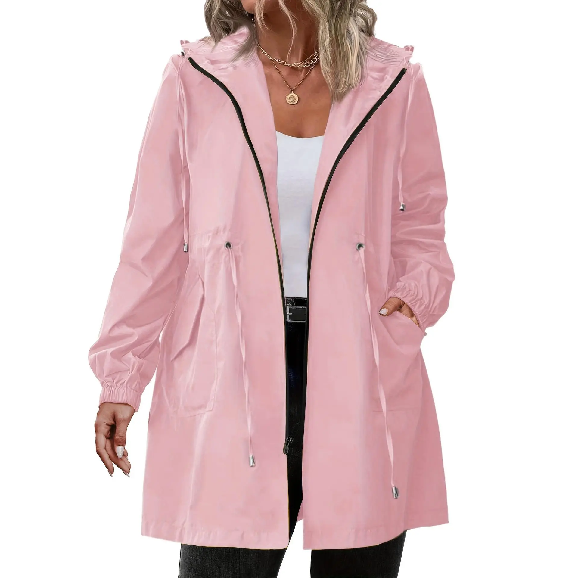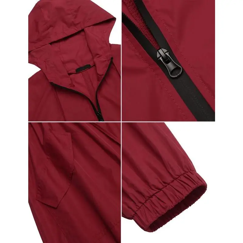 Women's rainproof jacket plus size long raincoat lightweight hooded windbreaker thinRAIMENTRY
